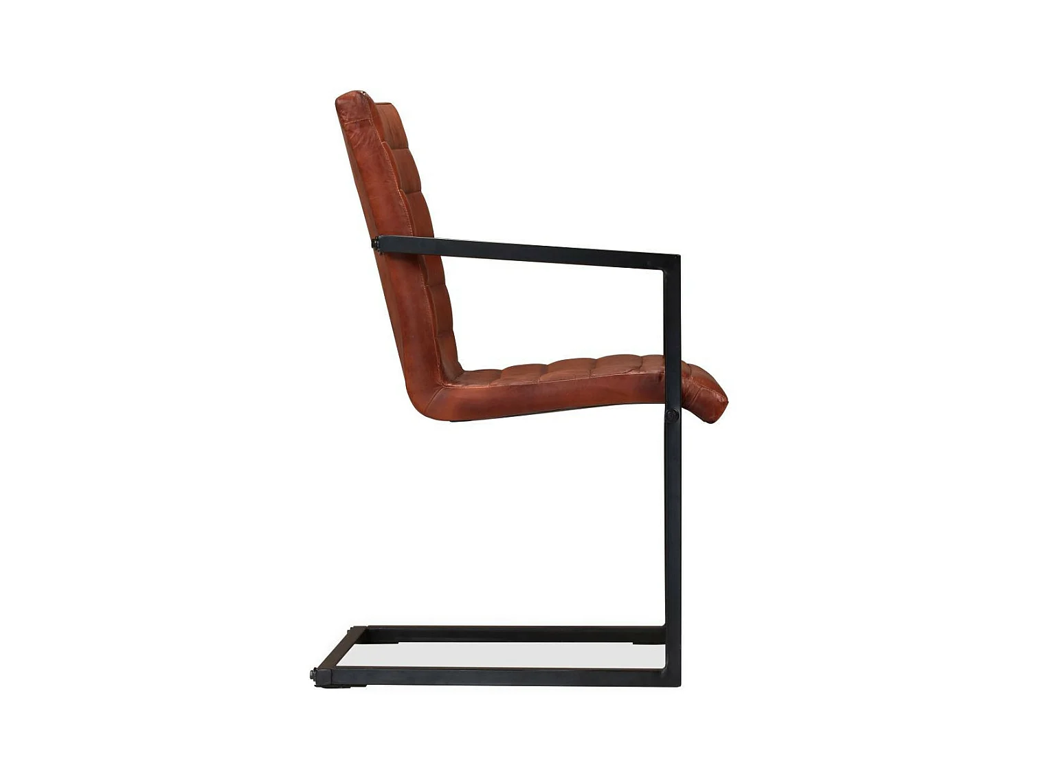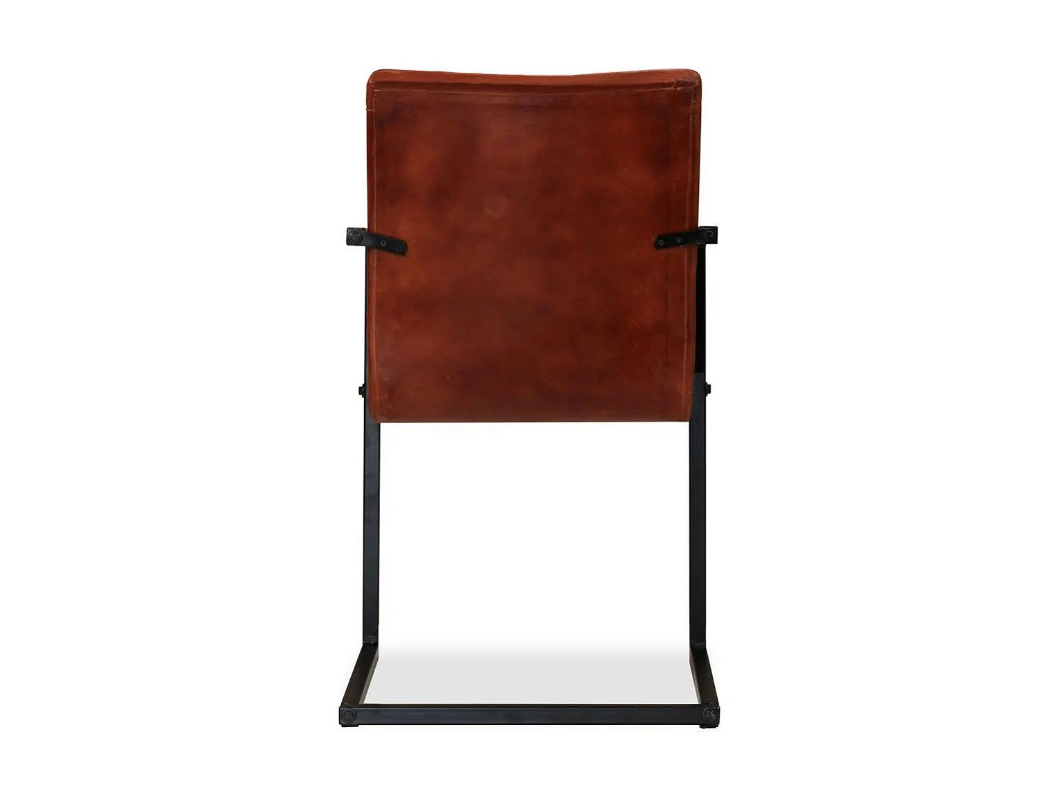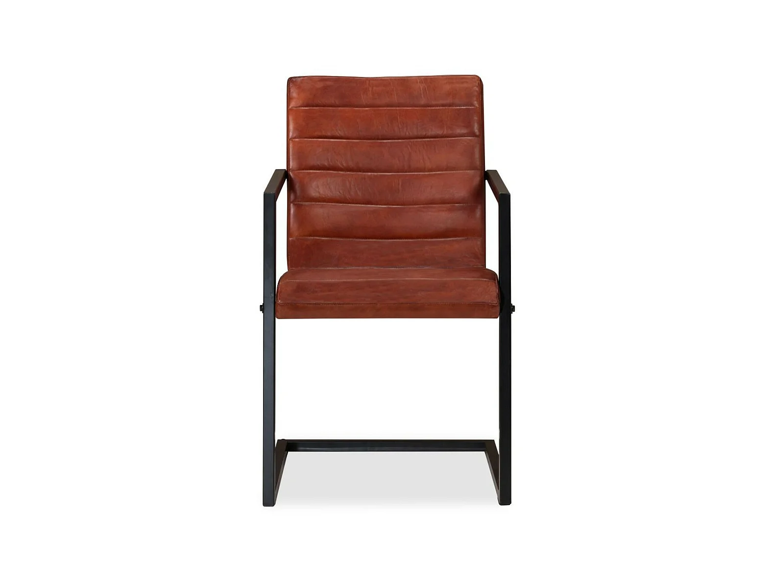 Chaise avec accoudoirs cuir marron et pieds métal noir Kandyas - Lot de 2