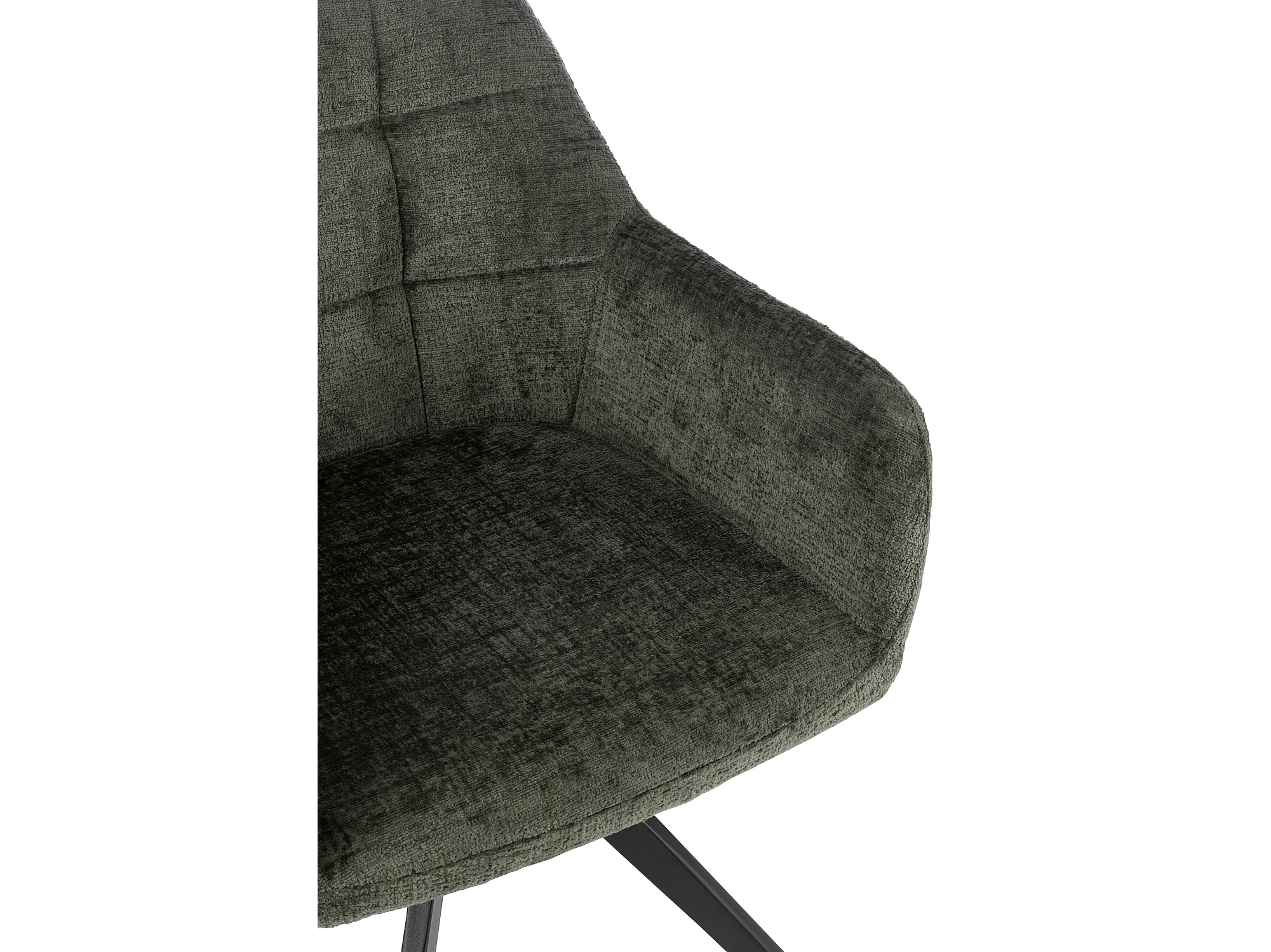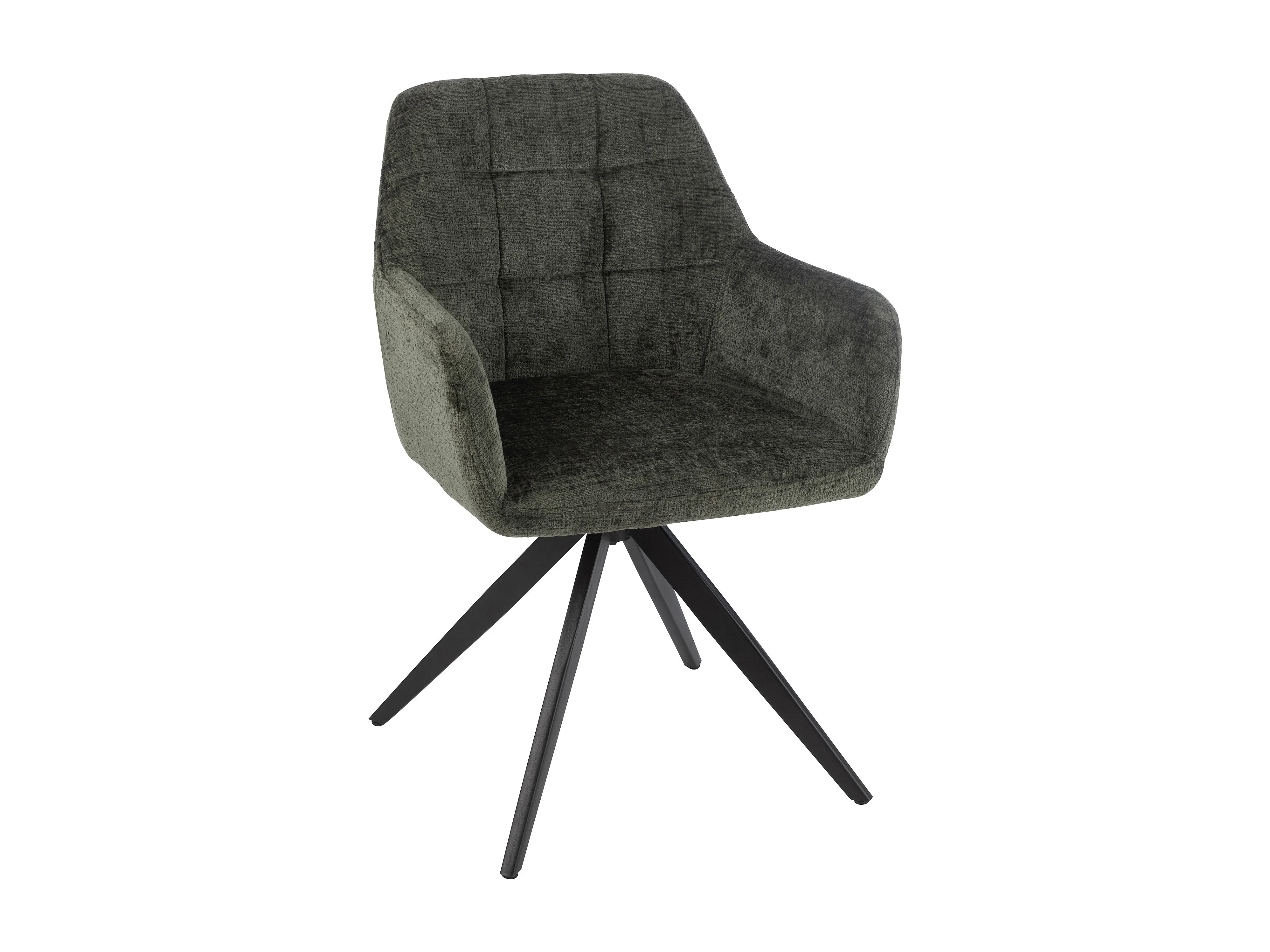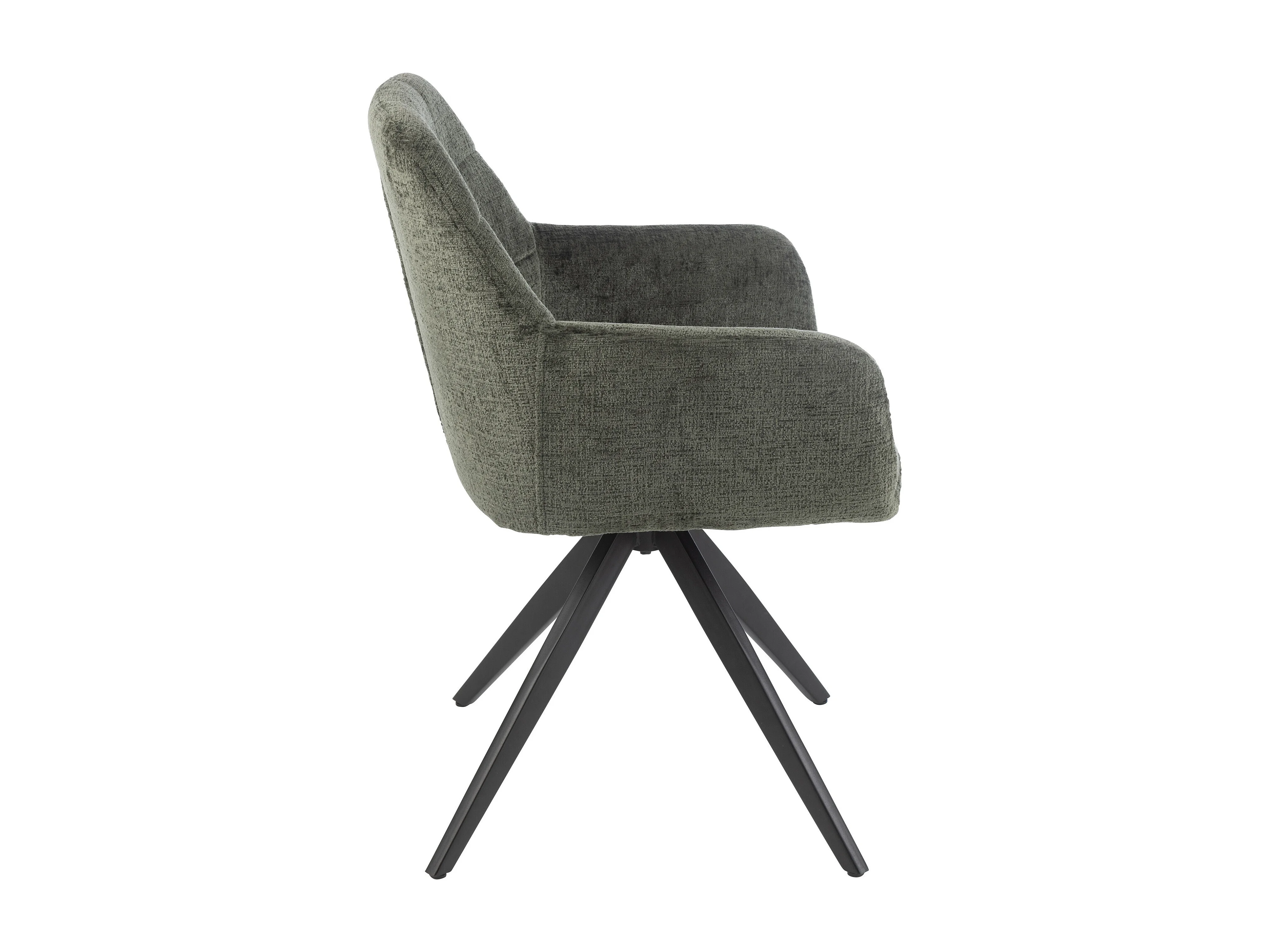 Chaise avec accoudoirs LOUNA – Tissu doux et pieds acier noir-Vert