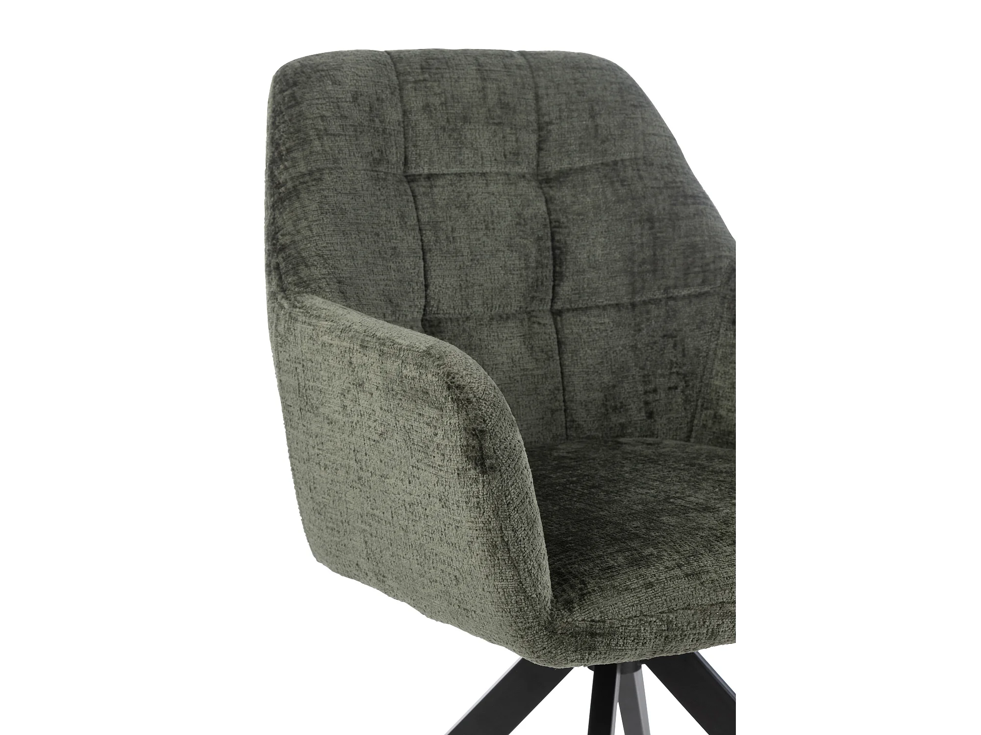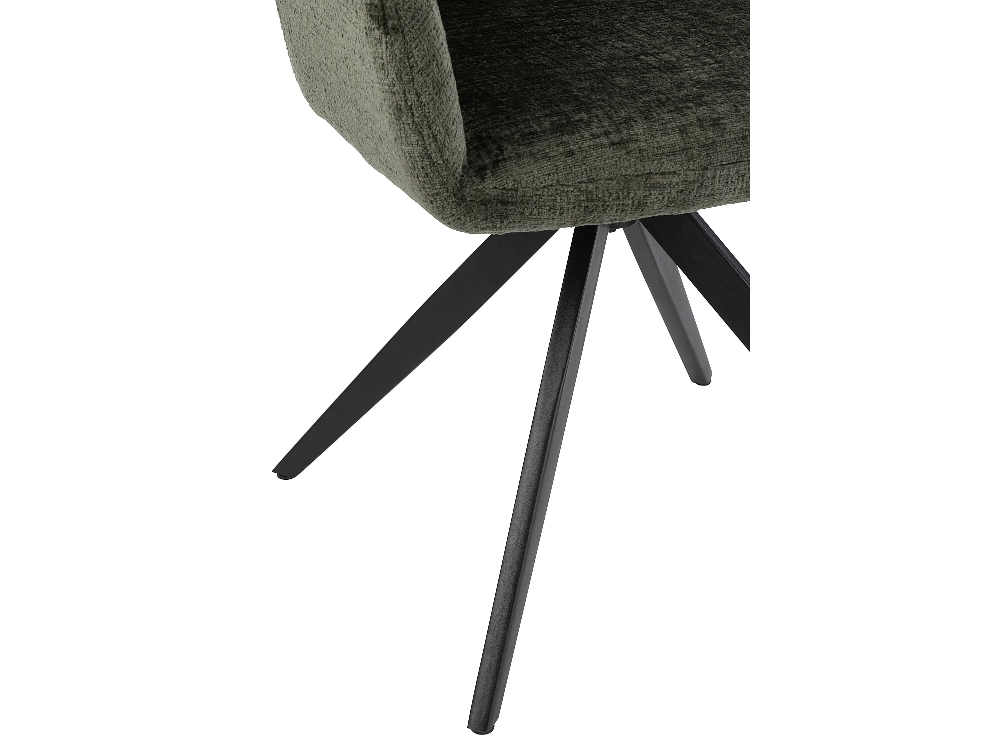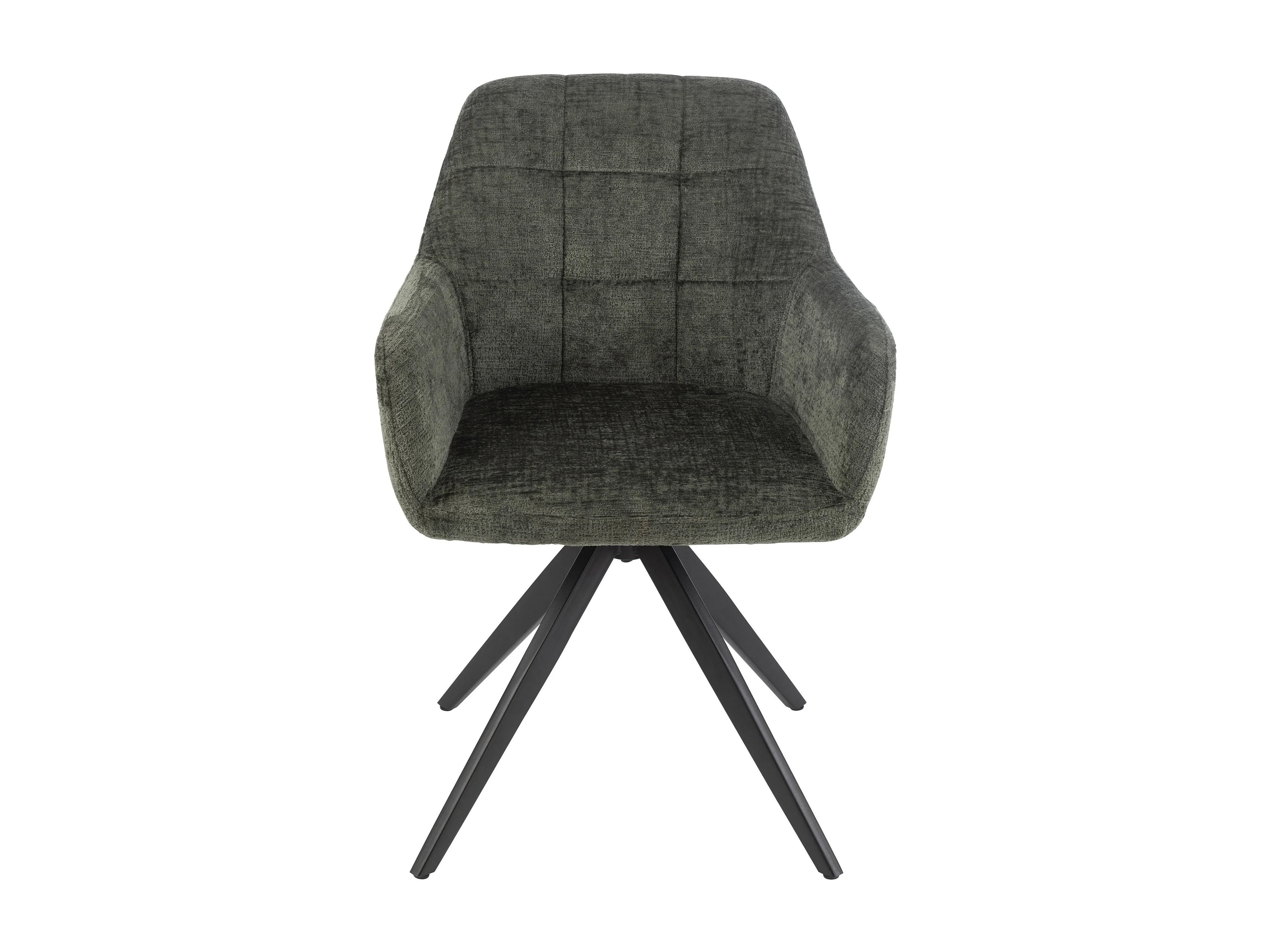 Chaise avec accoudoirs LOUNA – Tissu doux et pieds acier noir-Vert