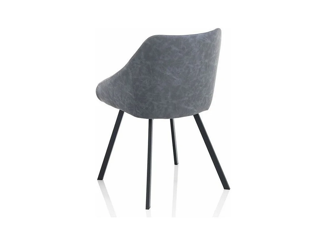 Chaise avec accoudoirs simili cuir bleu gris et pieds métal noir Moza - Lot de 2