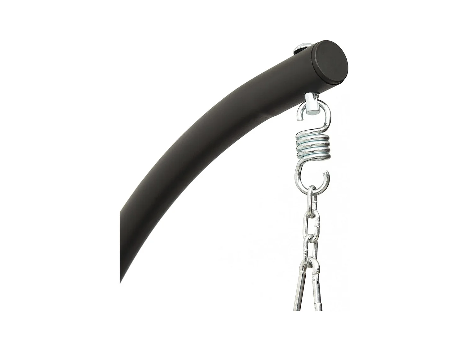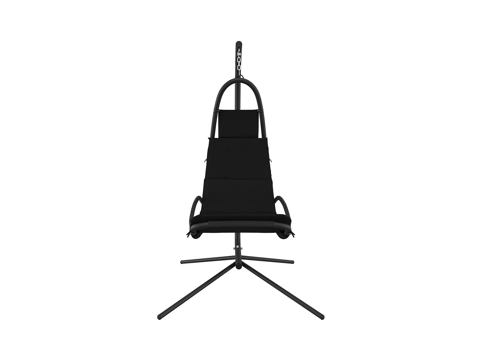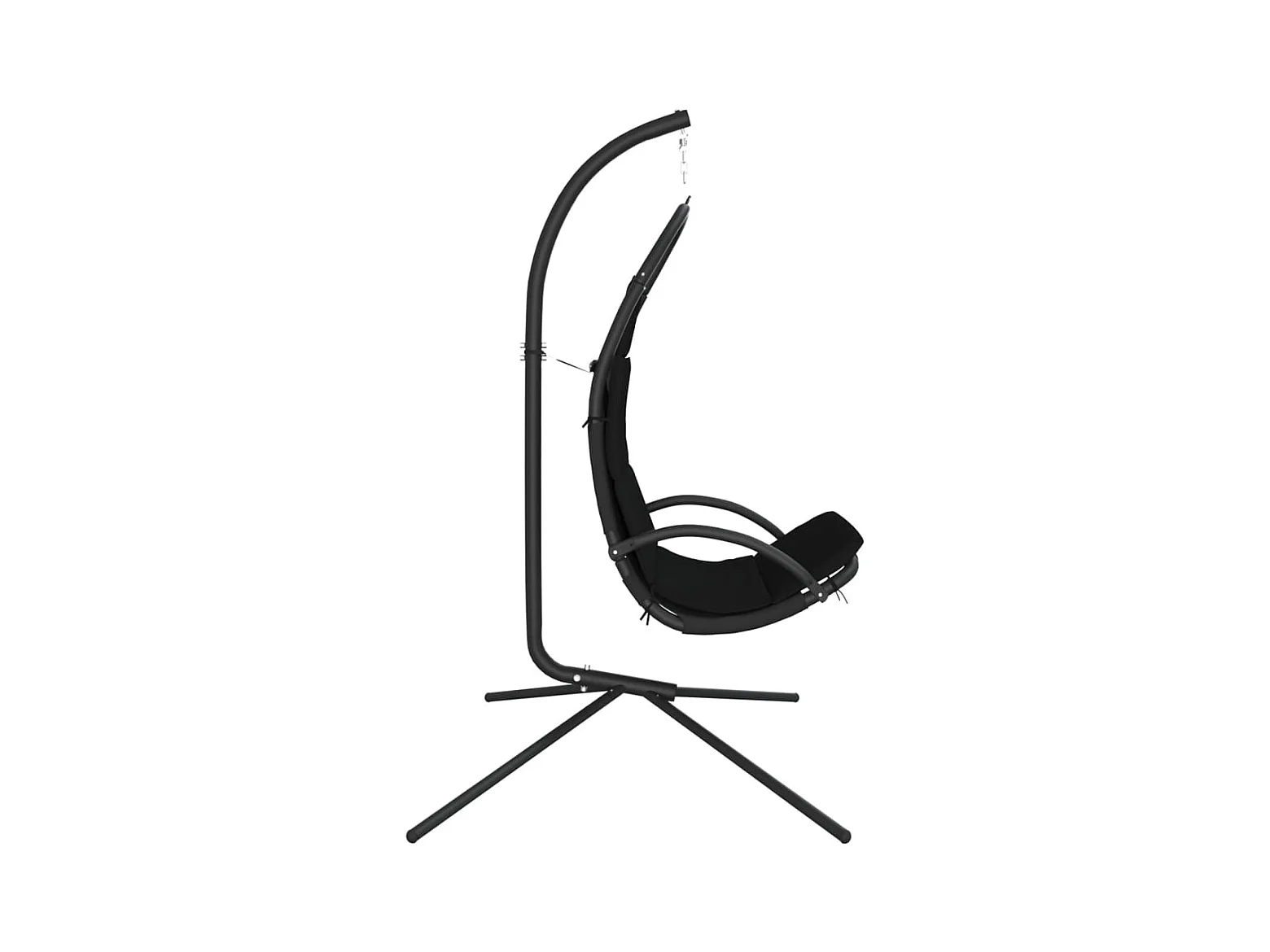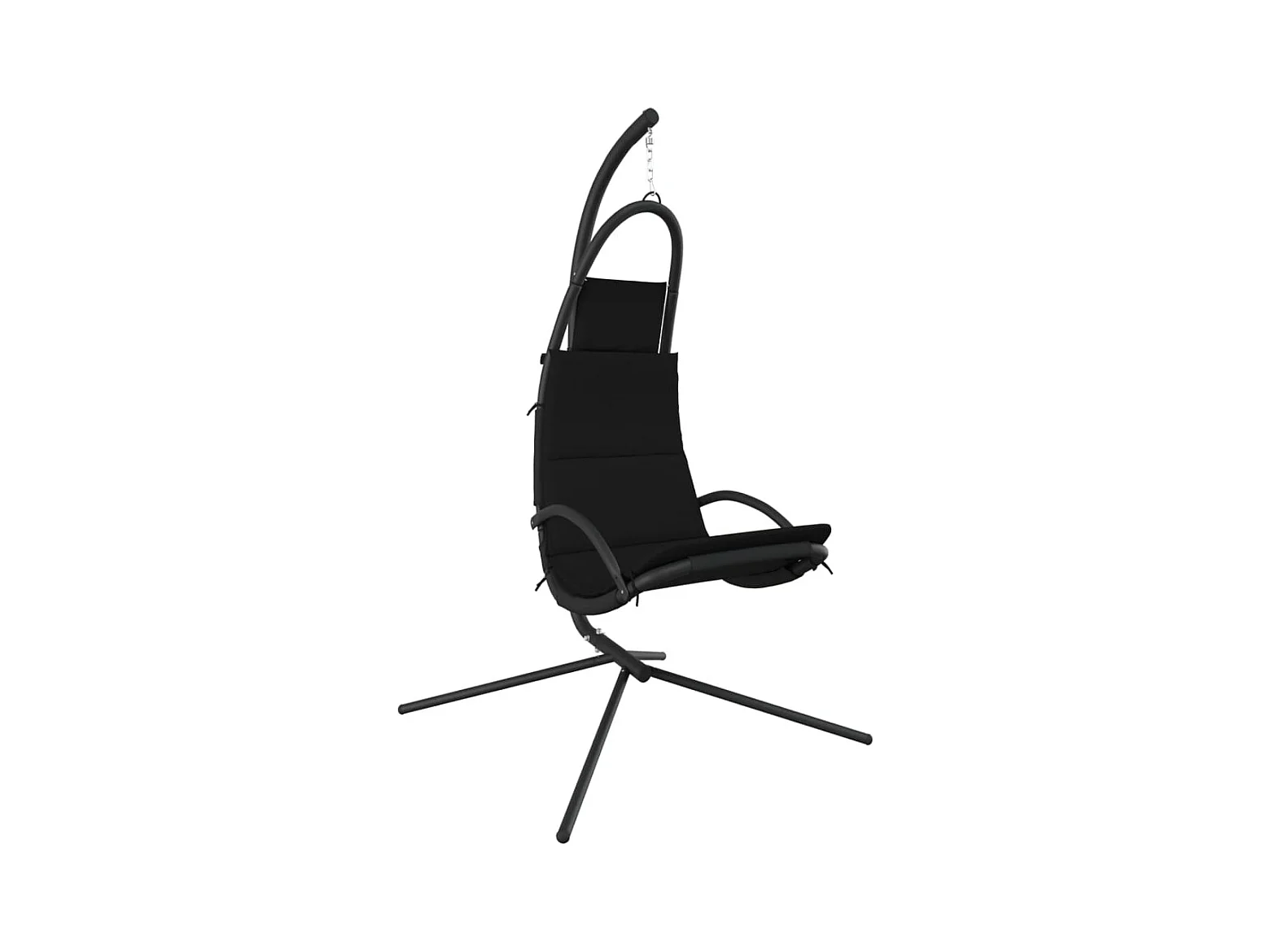 Chaise balançoire de jardin et coussin noir tissu Oxford-acier