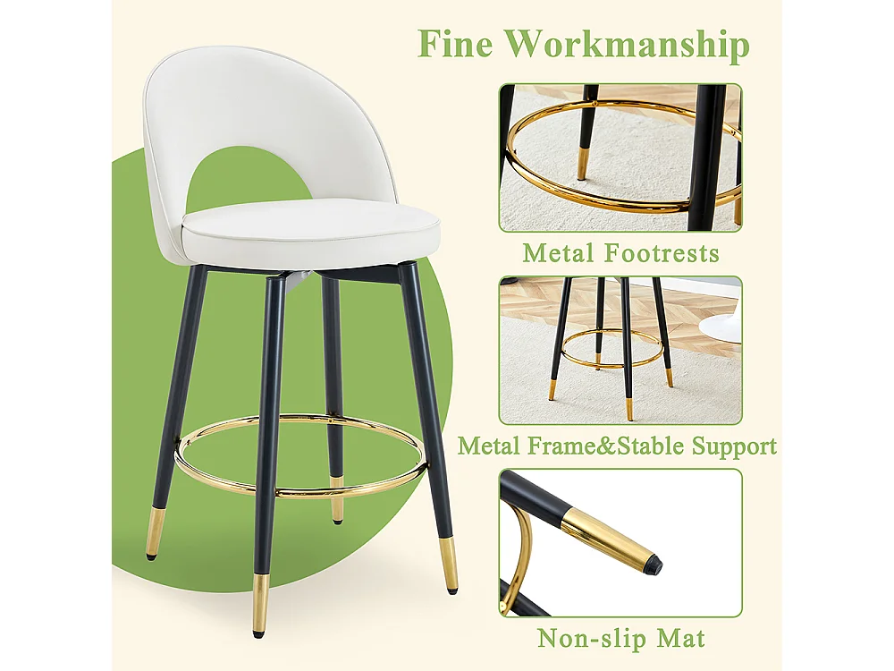 Chaise bar pivotante 360° PU blanc moderne rembourrée confortable polyvalente lot de 2