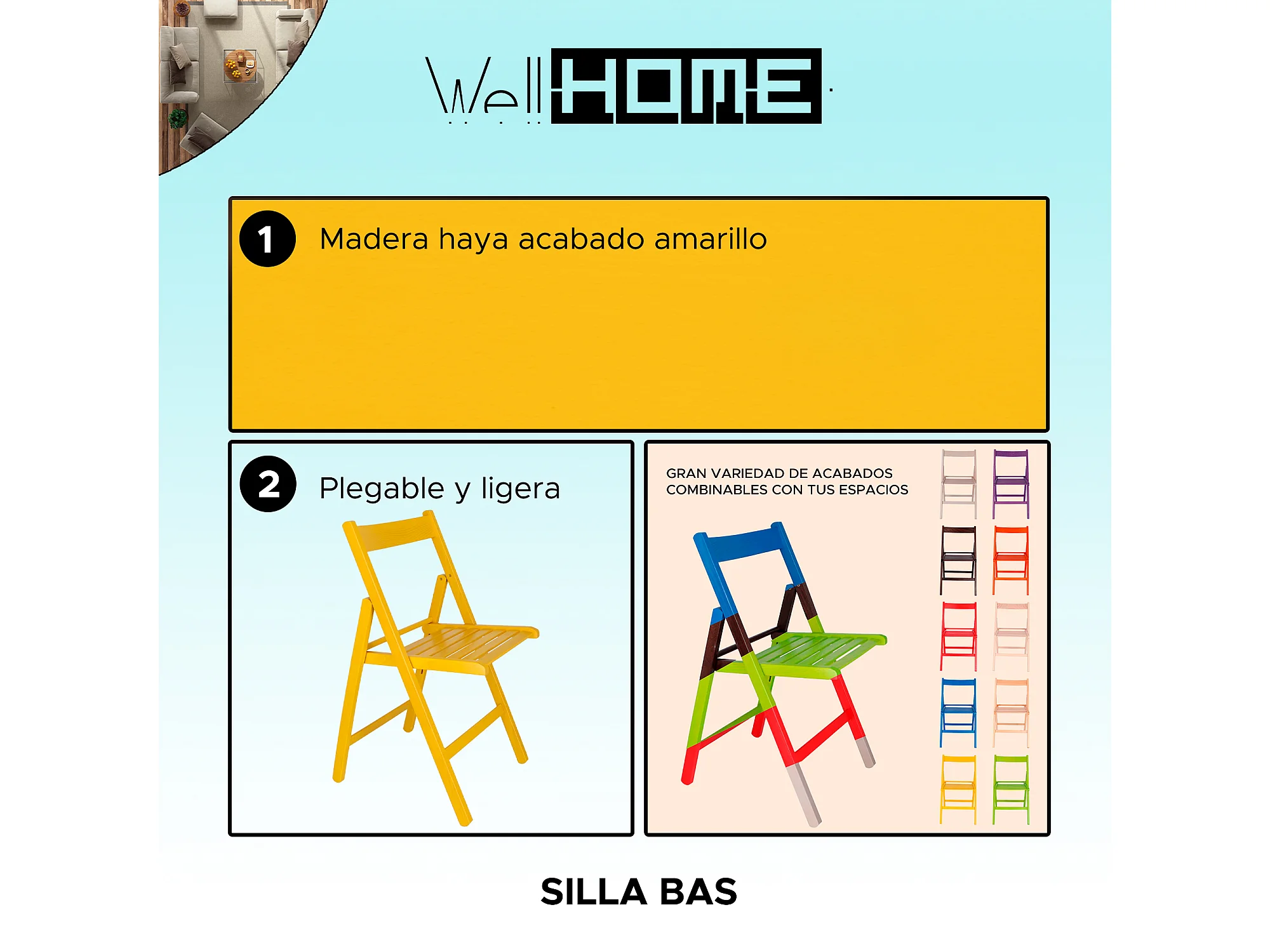 Chaise BAS en bois de hêtre, finition jaune, 43x47x79 cm