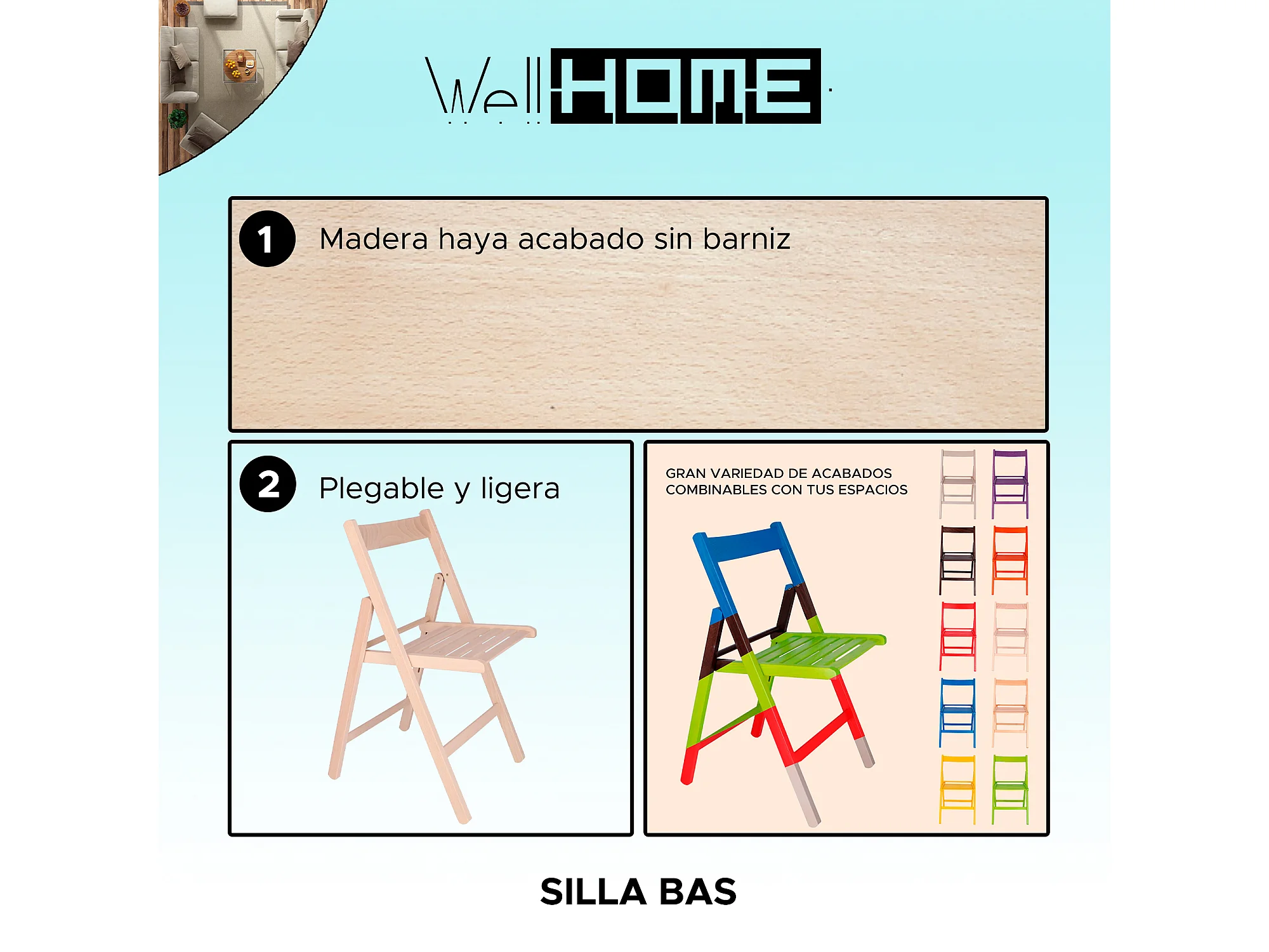 Chaise BAS en bois de hêtre, finition vernis, 43x47x79 cm
