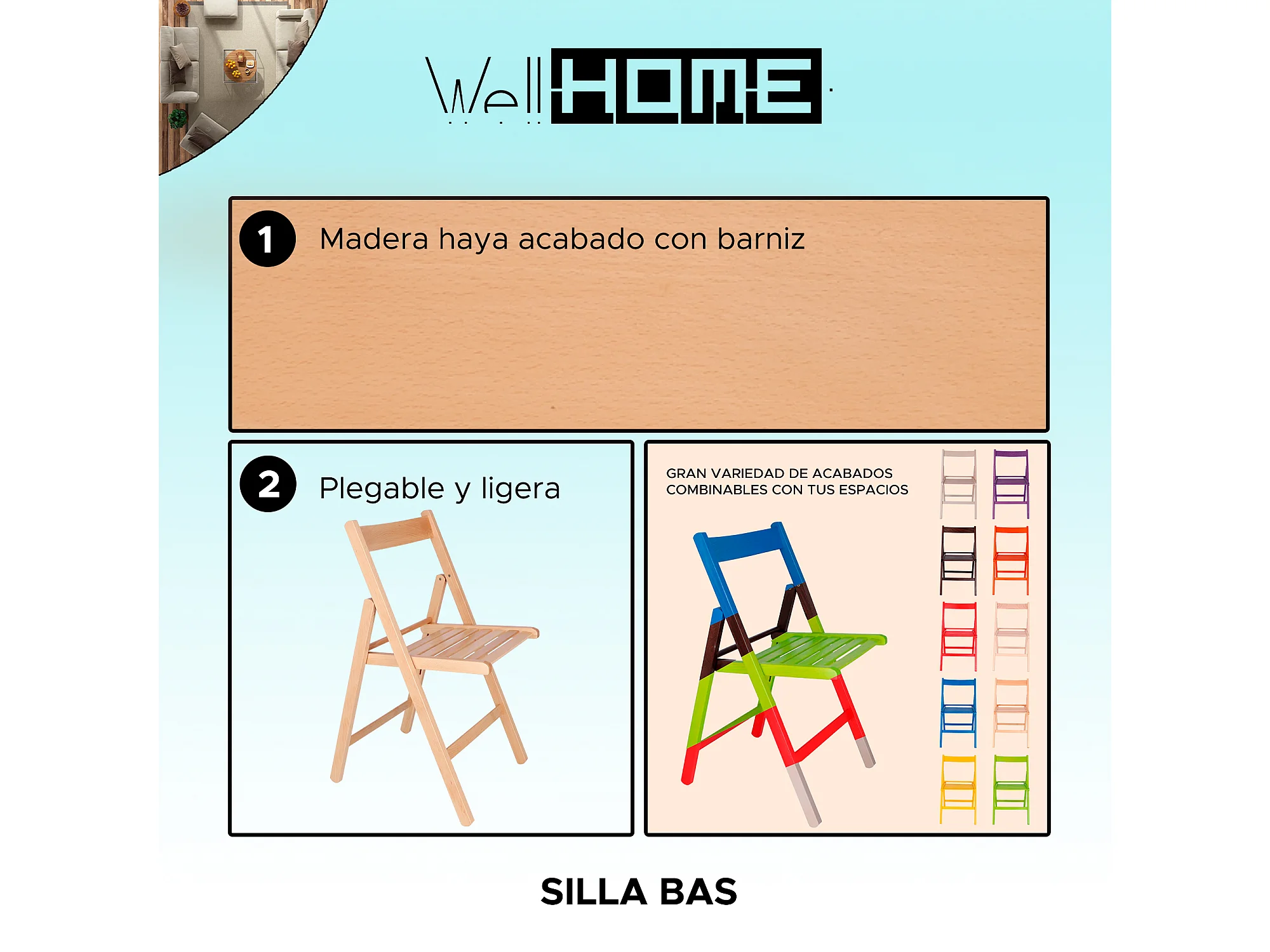 Chaise BAS en bois de hêtre, finition vernis, 43x47x79 cm
