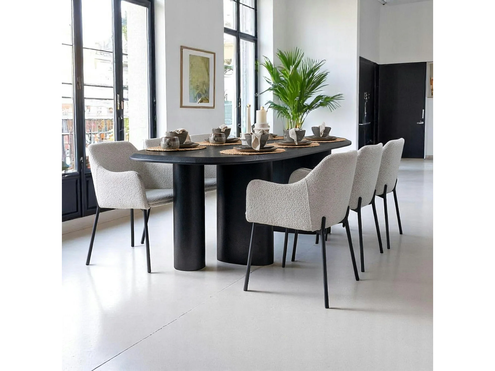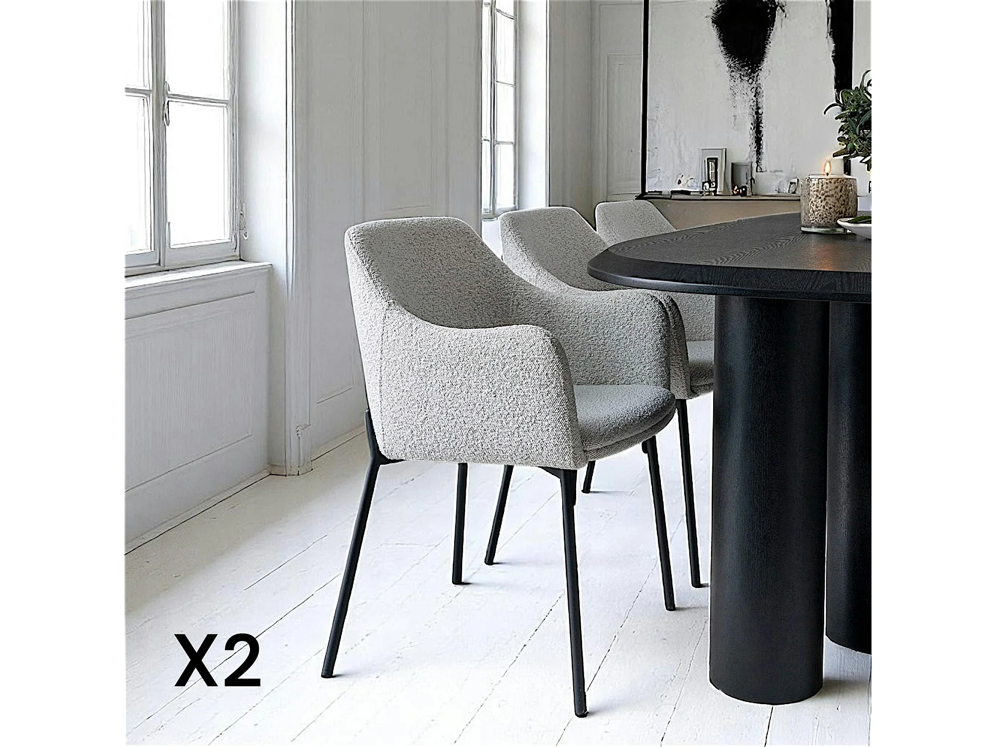 Chaise blanche moderne en tissu bouclette avec accoudoirs (lot de 2) SAVONE