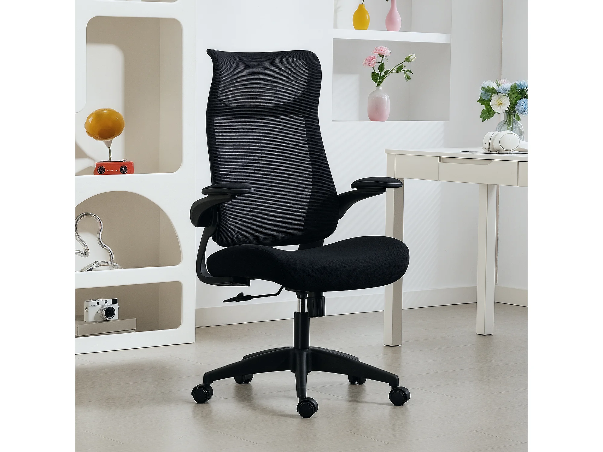 Chaise bureau ergonomique réglable accoudoirs 4D relevables rembourrés maille noir