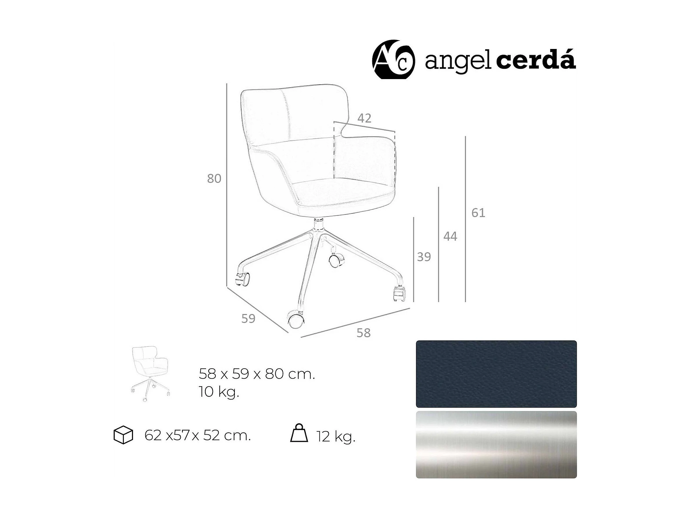 Chaise bureau pivotante design bleu marine Angel Cerda
