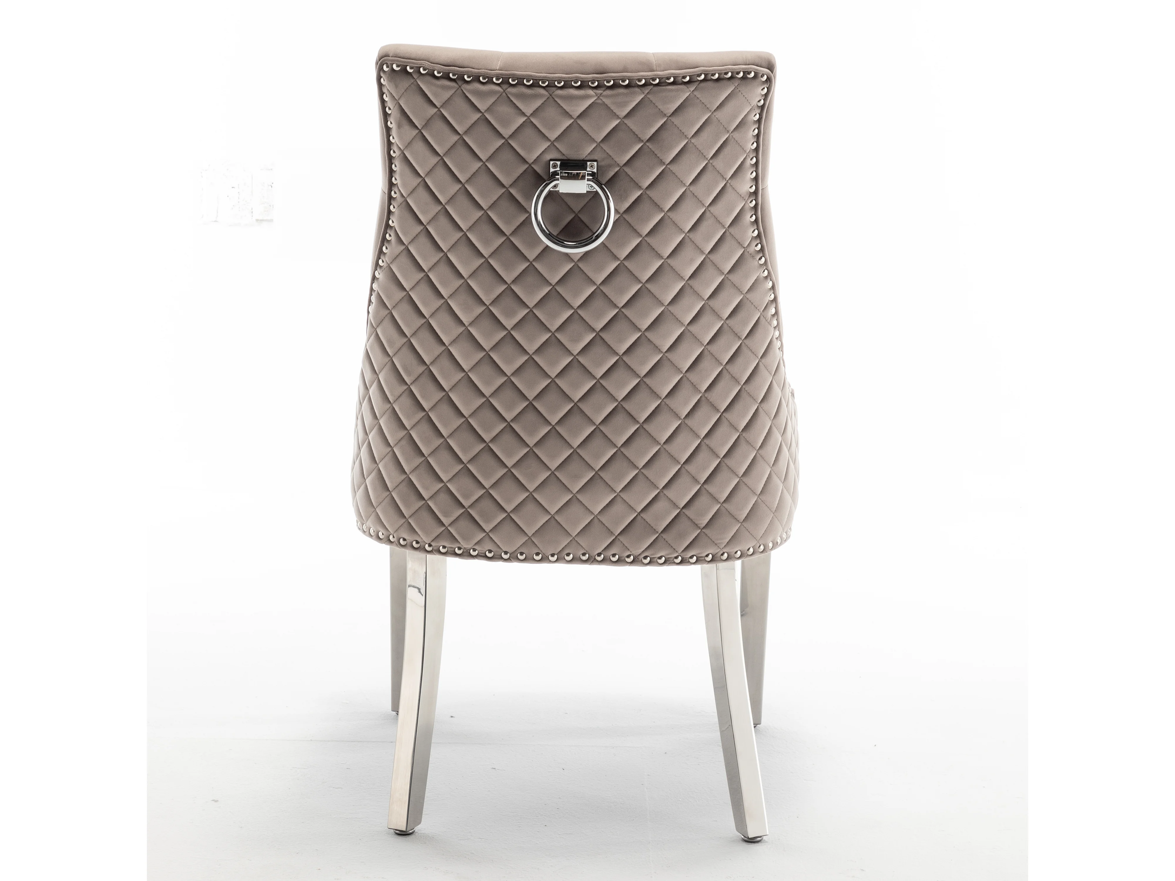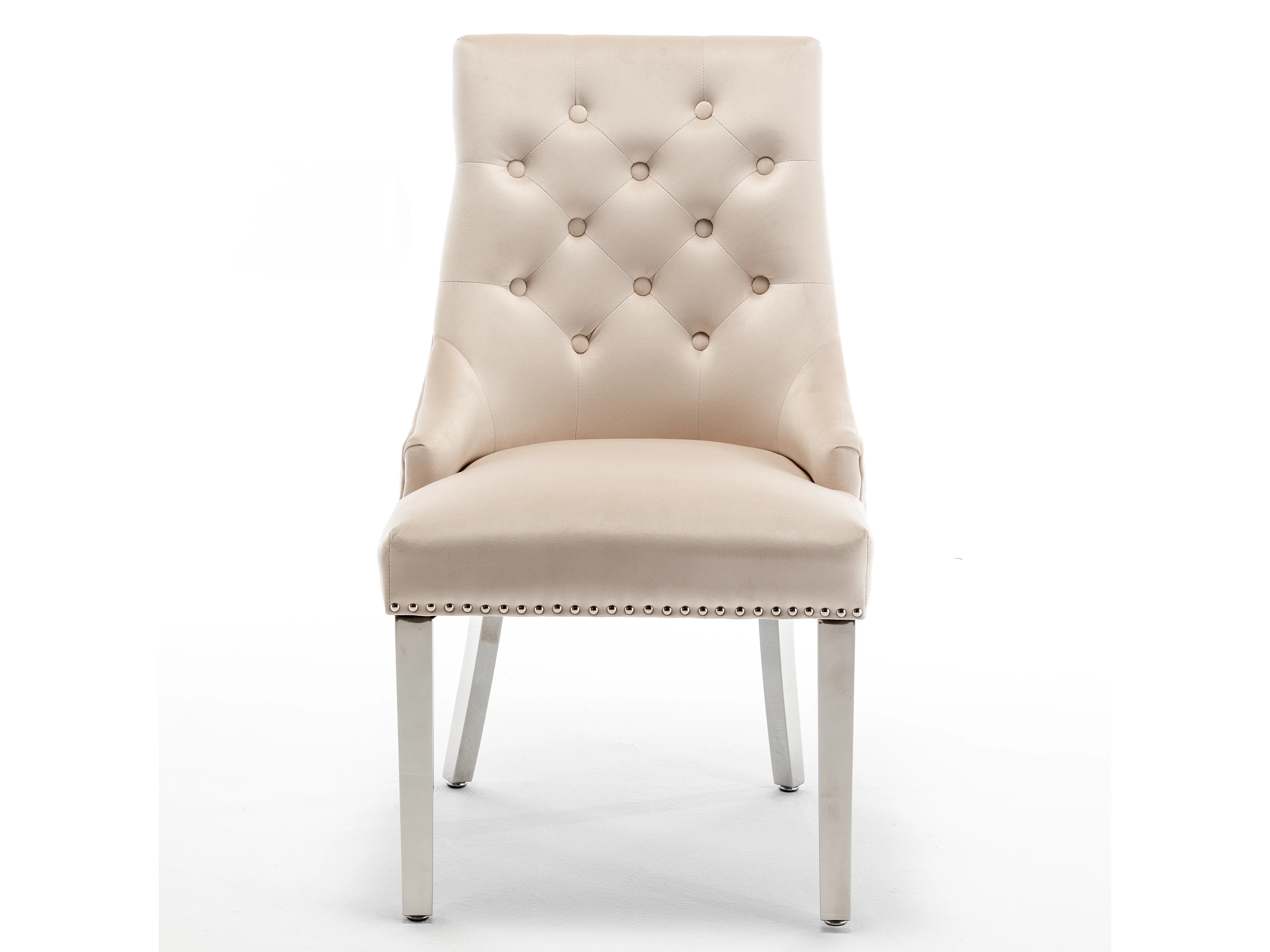 Chaise capitonnée velours avec anneau au dos et pieds métal chromé Royal - Lot de 2-Couleur Beige clair