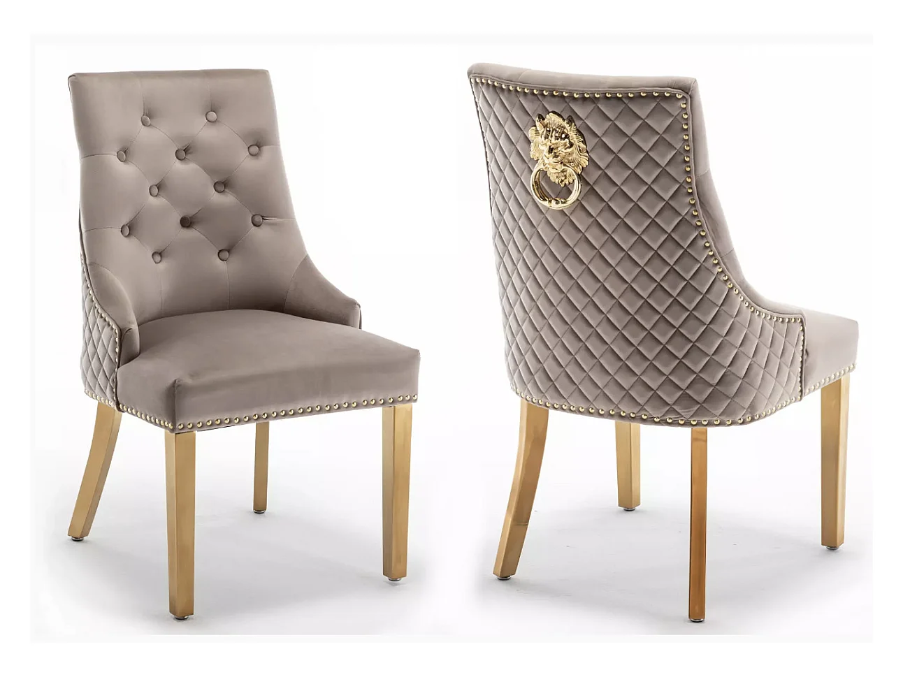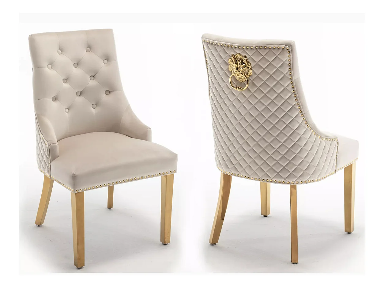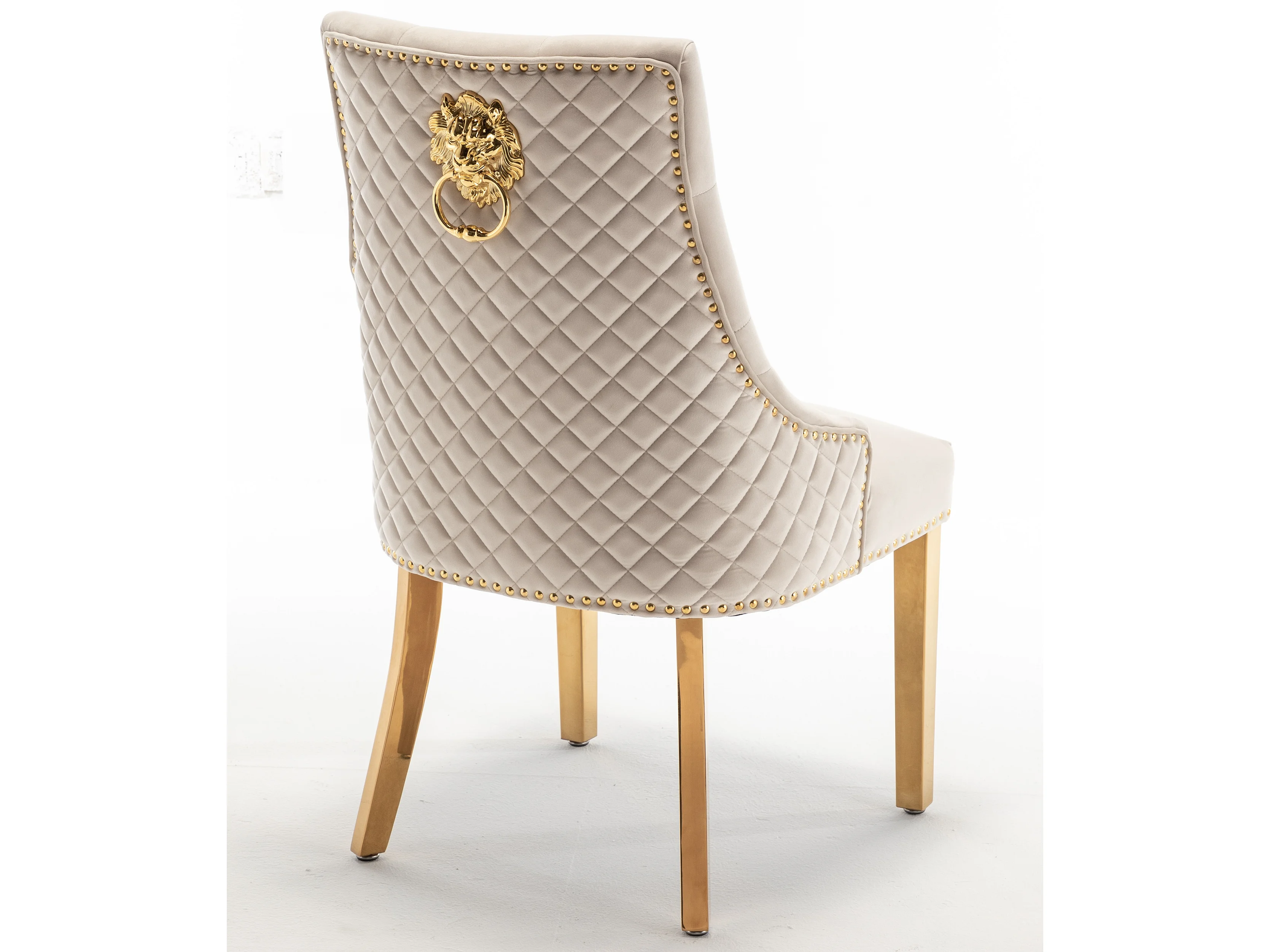 Chaise capitonnée velours avec anneau d'un lion au dos et pieds métal doré Elena - Lot de 2-Couleur Beige clair