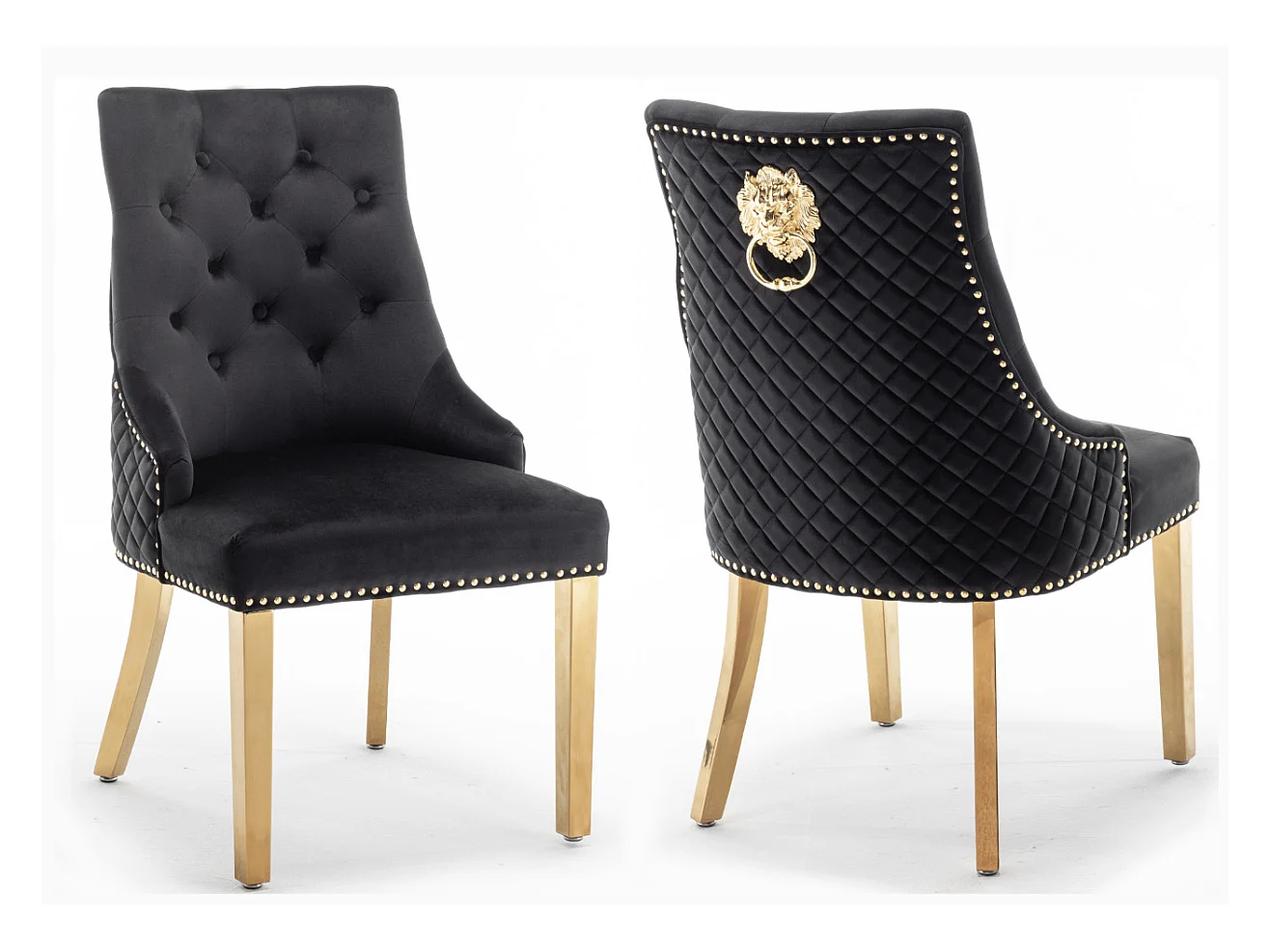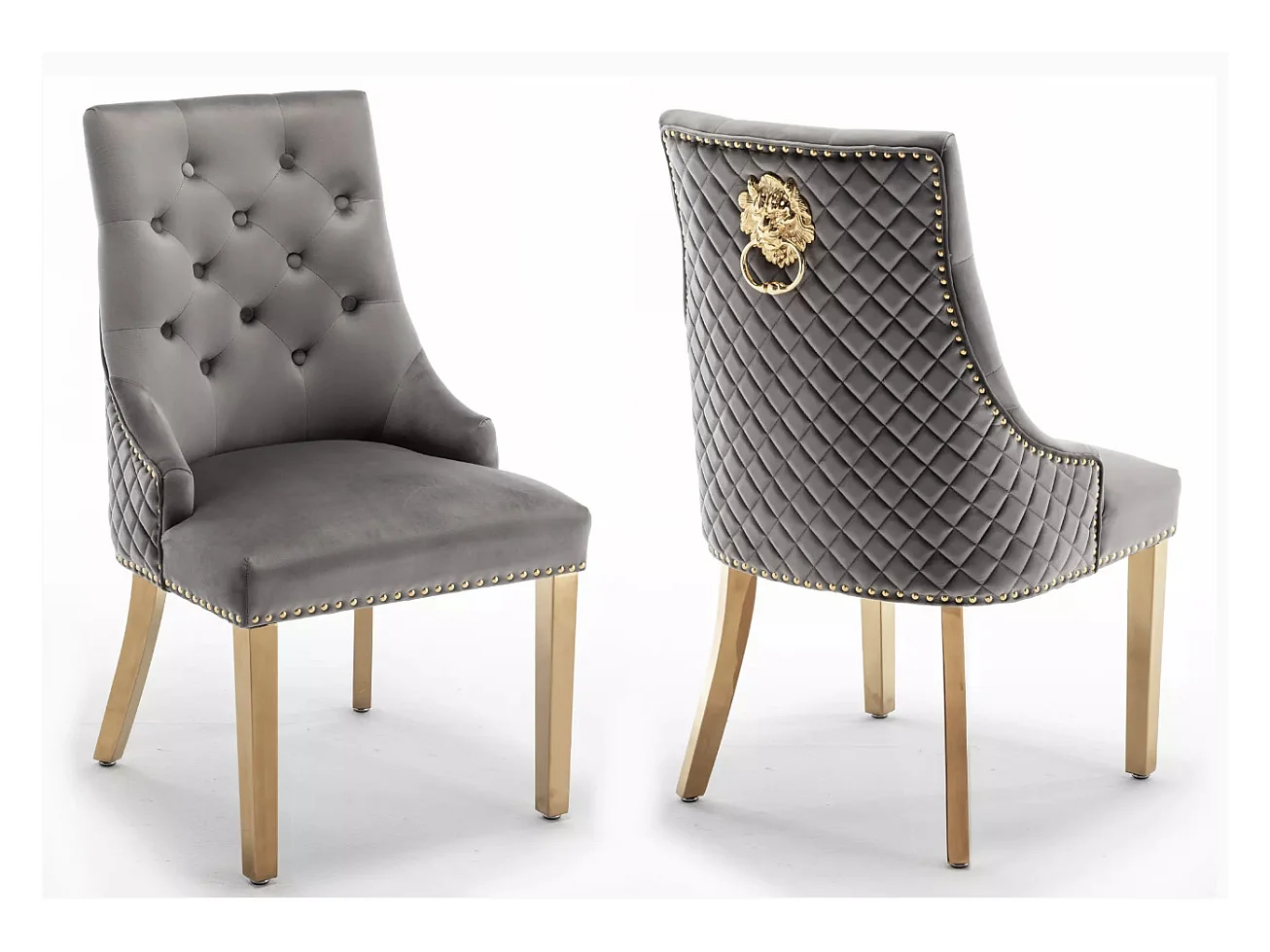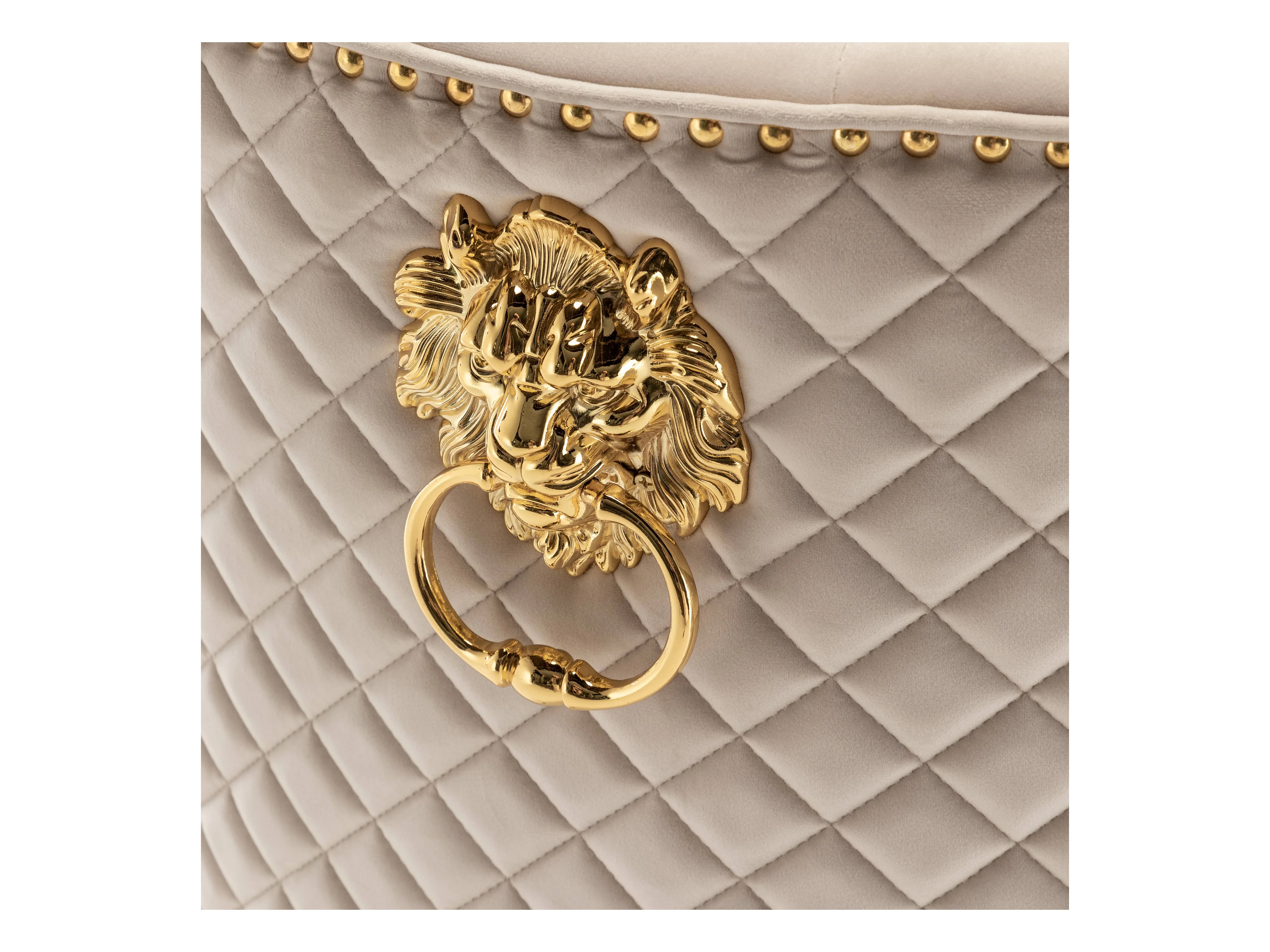 Chaise capitonnée velours avec anneau d'un lion au dos et pieds métal doré Elena - Lot de 2-Couleur Beige clair