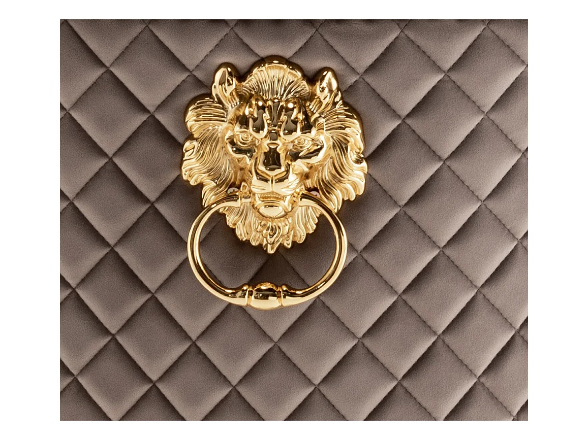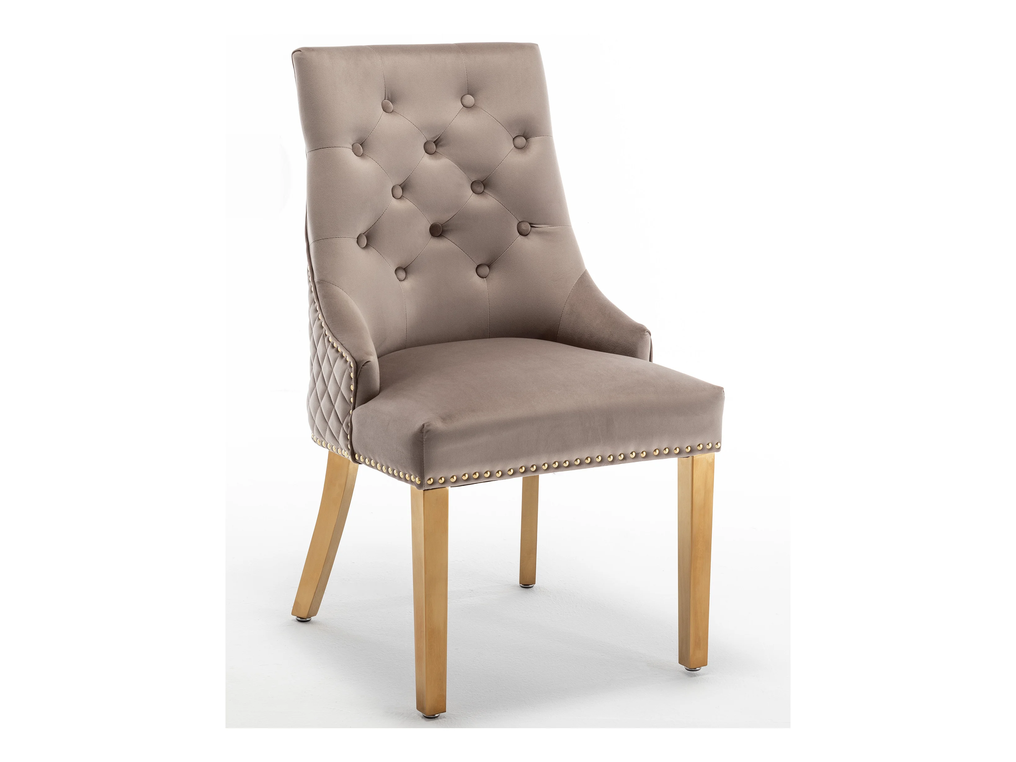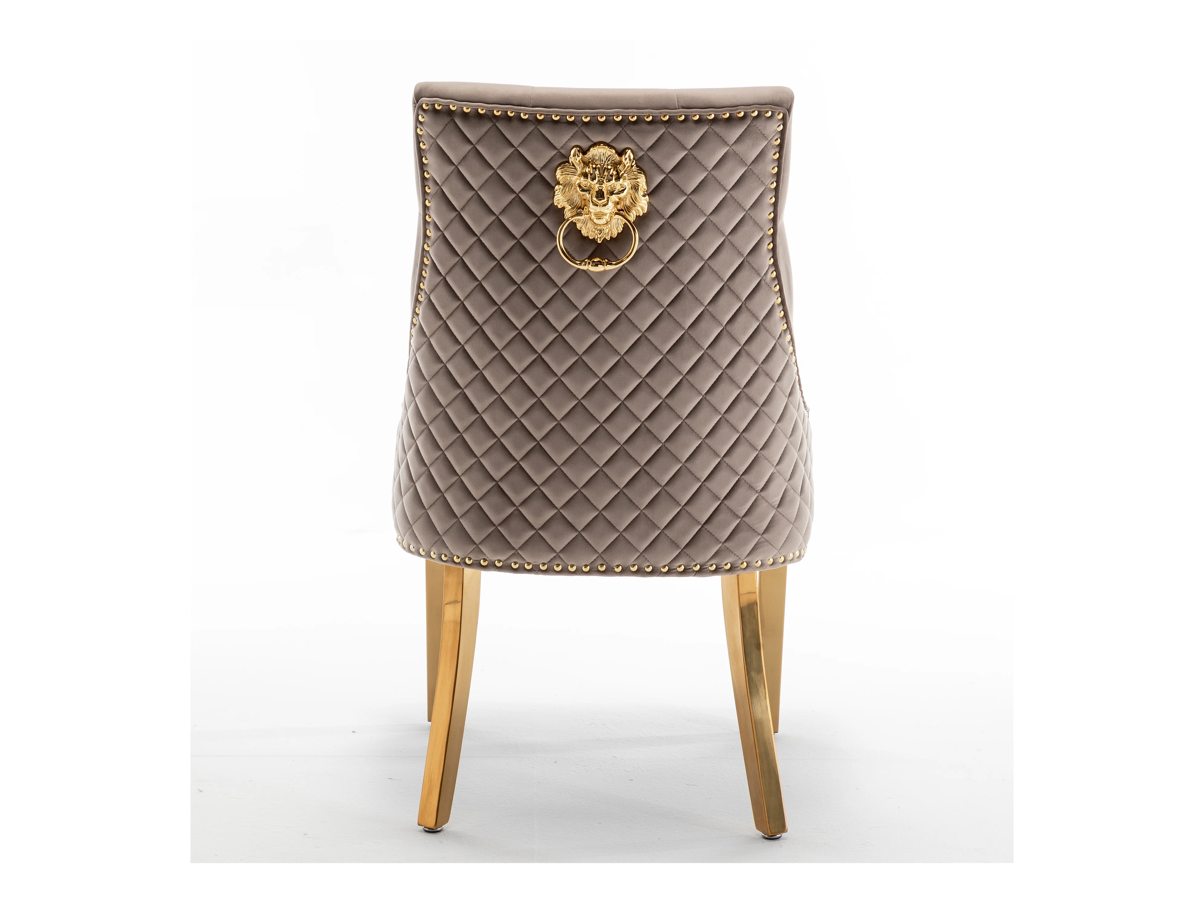 Chaise capitonnée velours avec anneau d'un lion au dos et pieds métal doré Elena - Lot de 2-Couleur Beige foncé