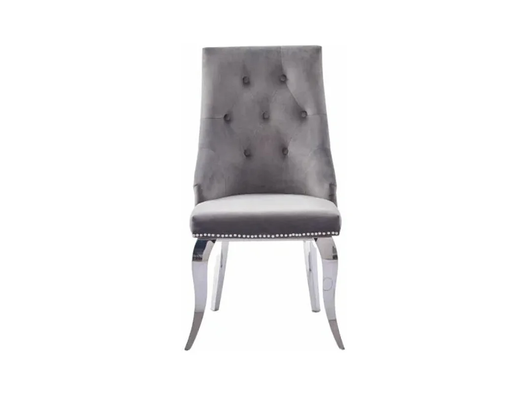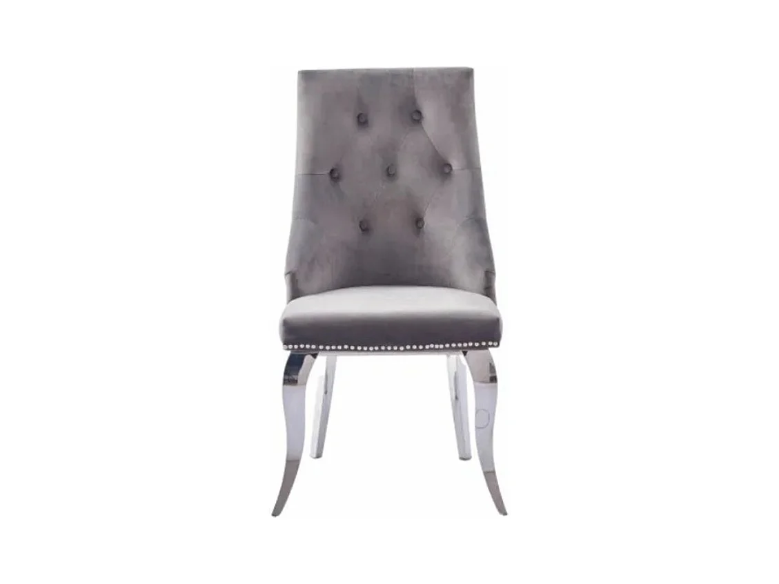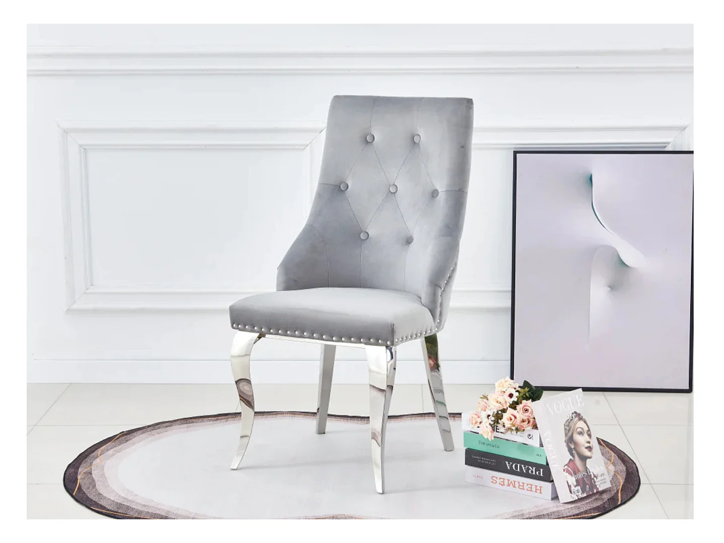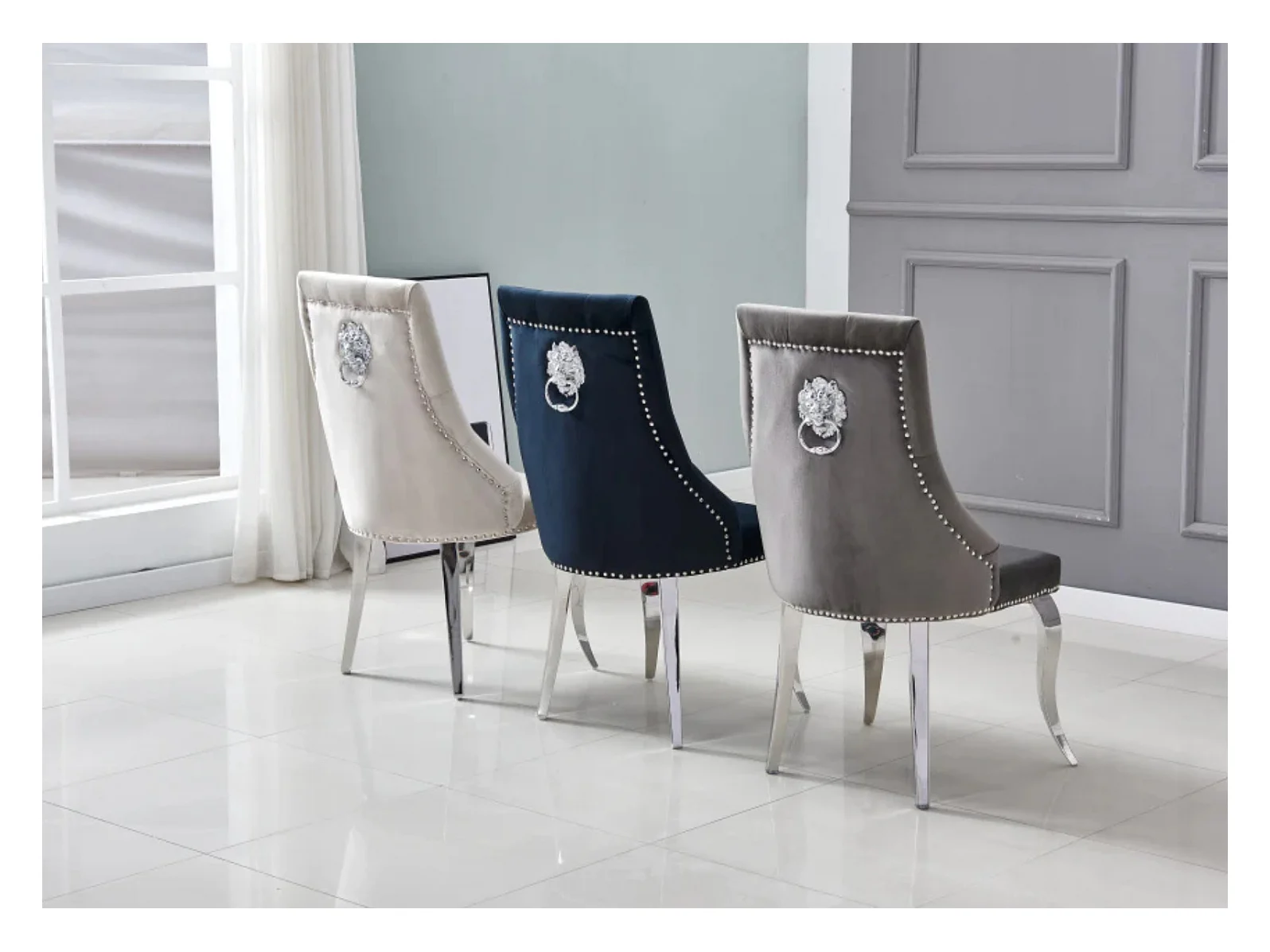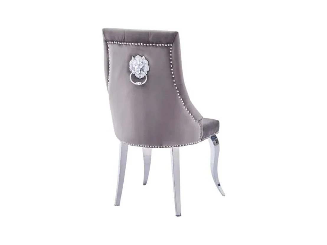 Chaise capitonnée velours avec anneau d'un lion au dos et pieds métal effet miroir Liona - Lot de 4-Couleur Beige foncé