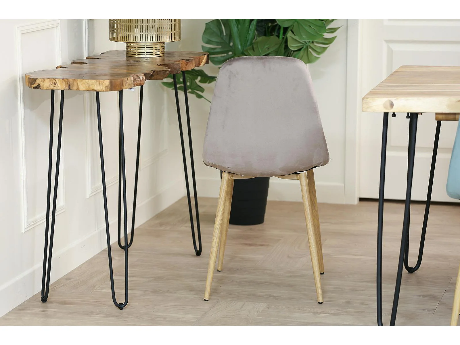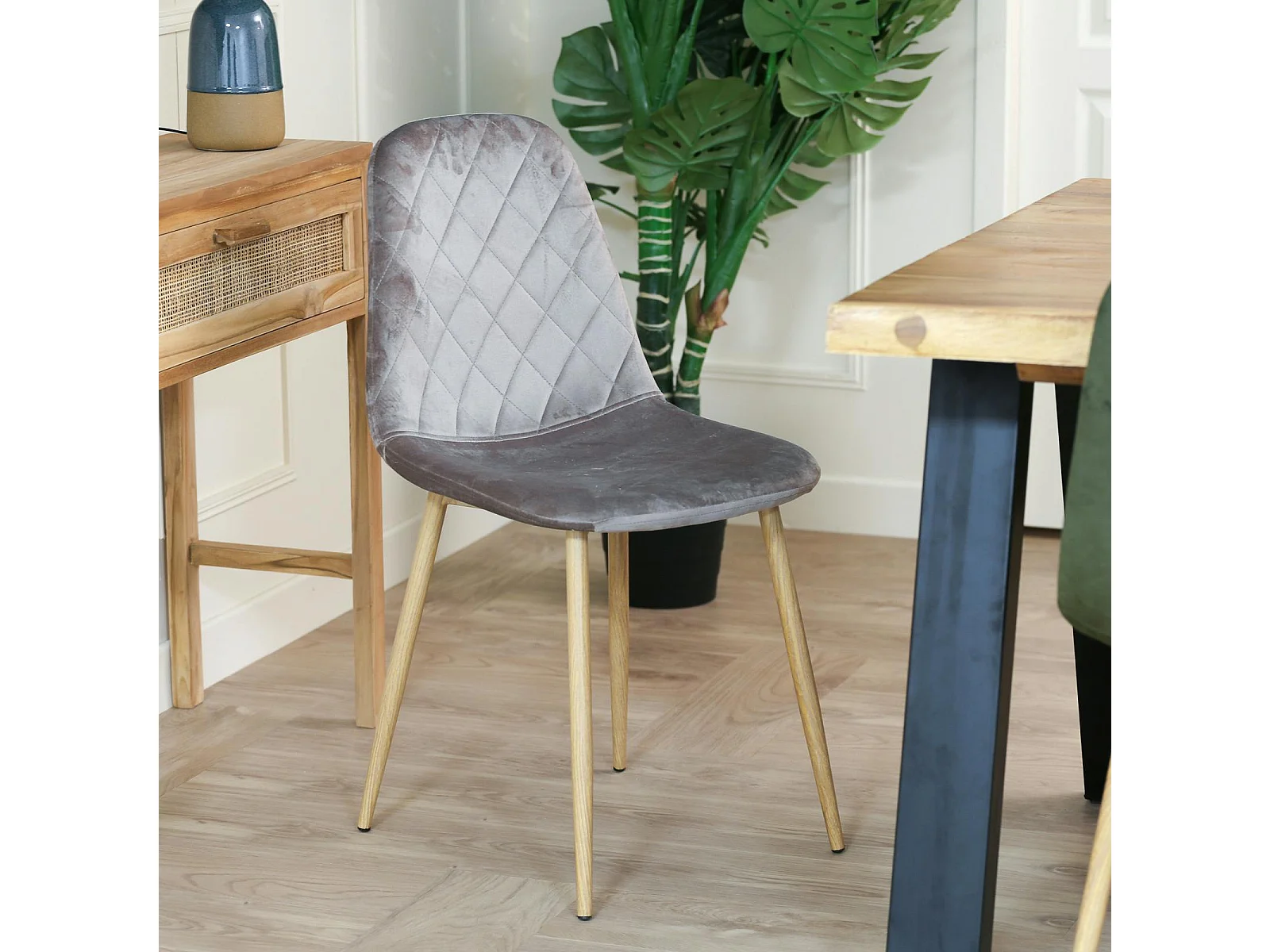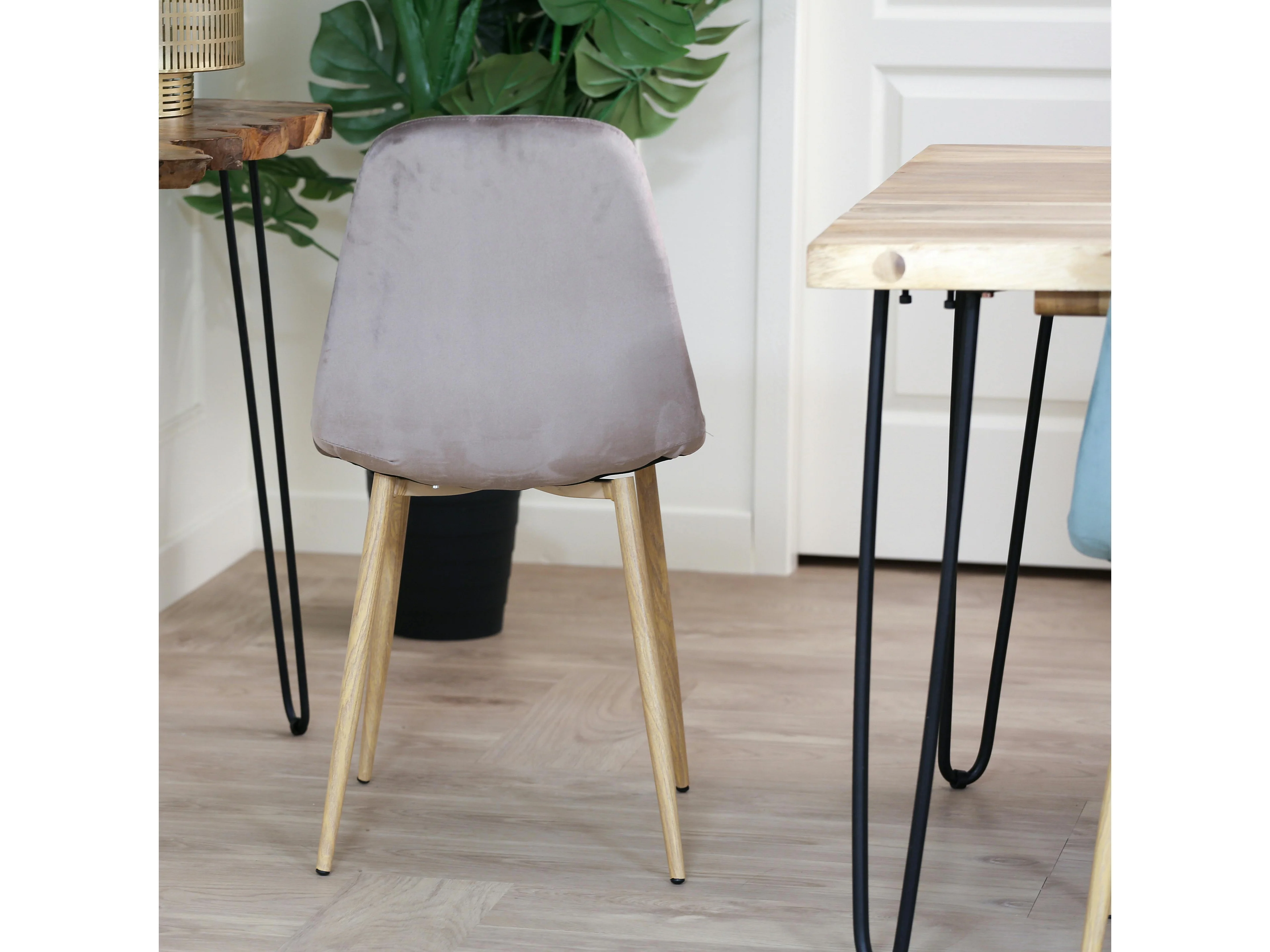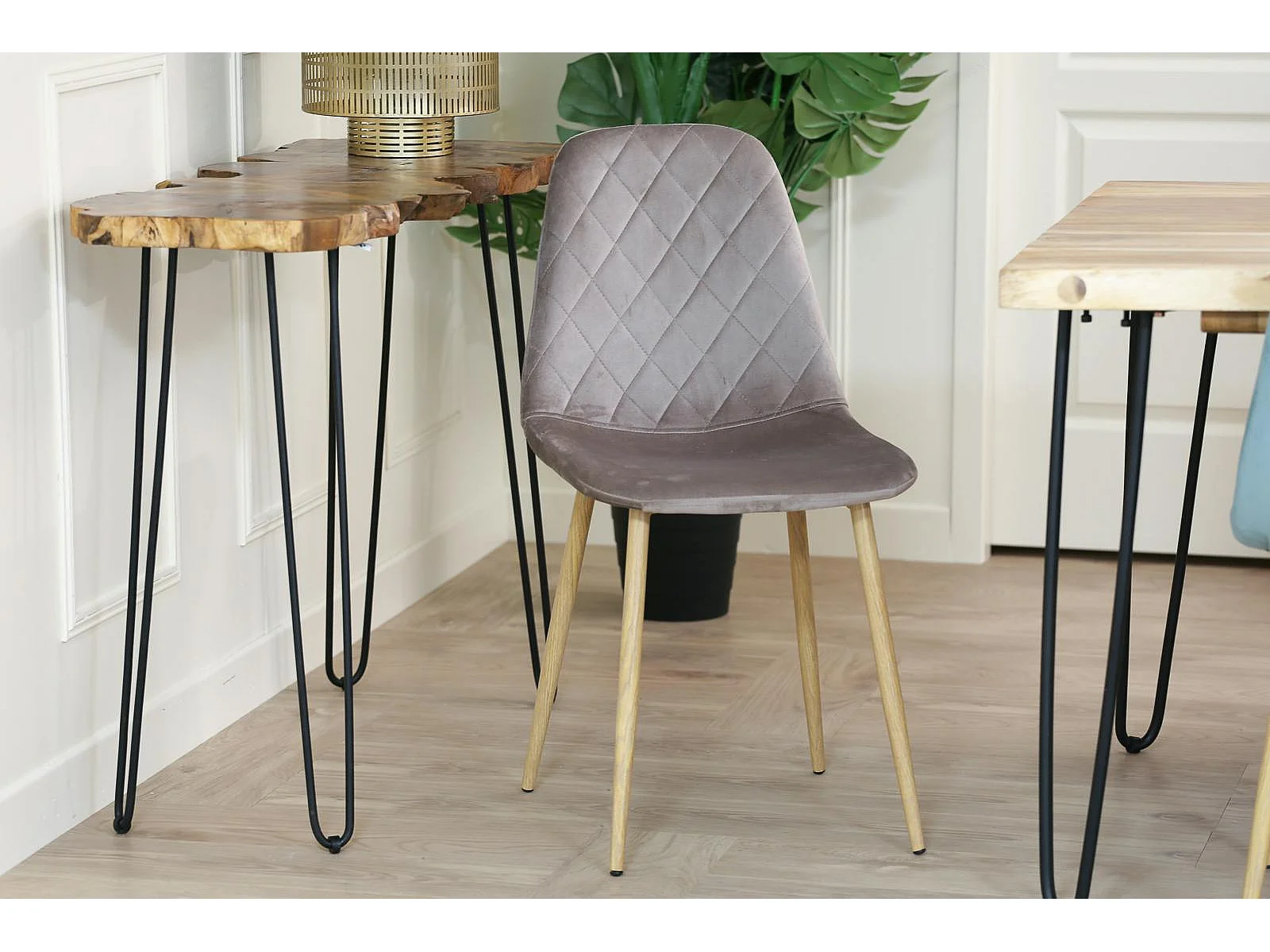 Chaise capitonnée velours gris taupe HAWAI (lot de 2)