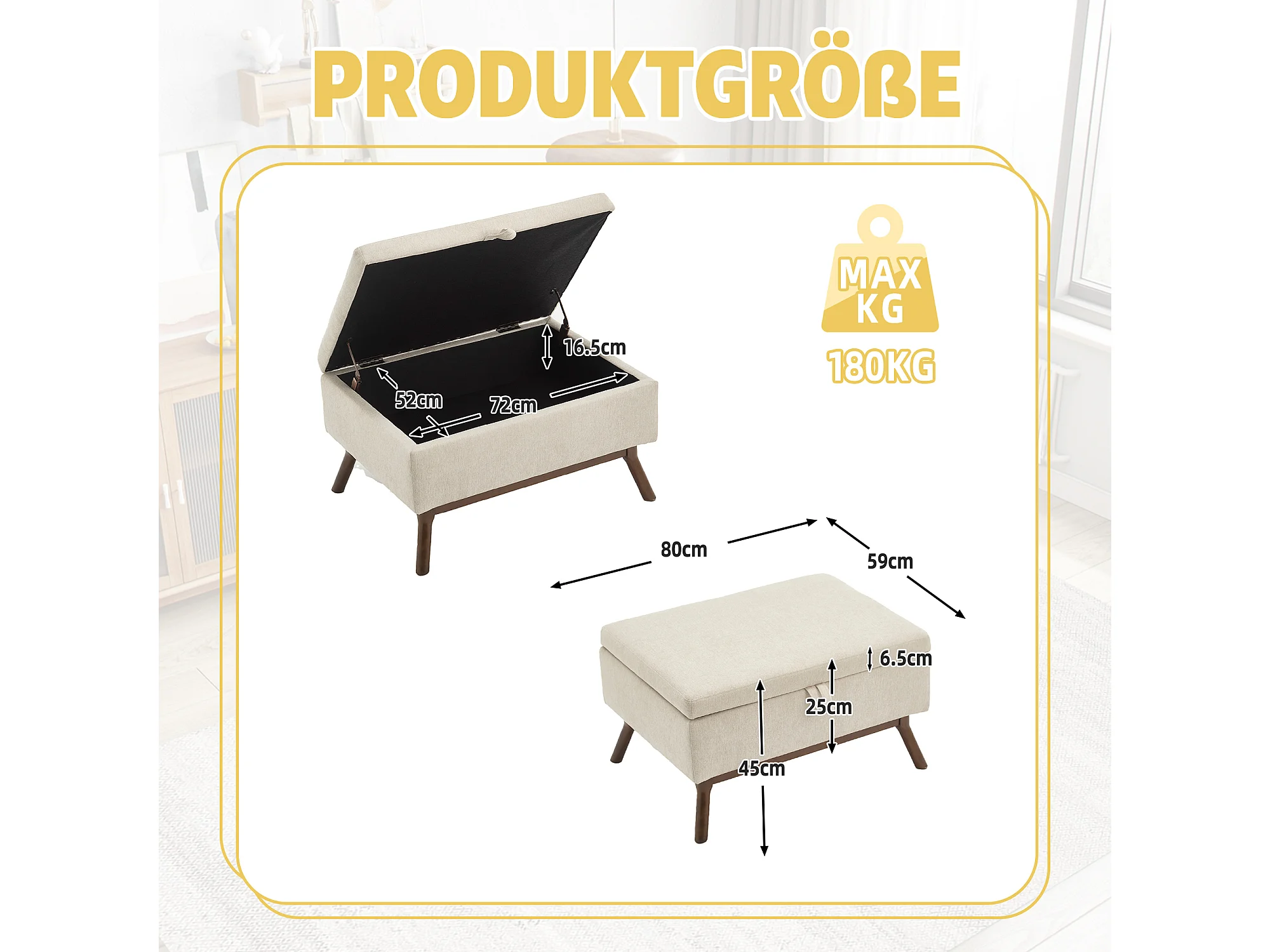 Chaise carrée - Chaise avec rangement - pour salon, entrée et salle familiale - lin blanc