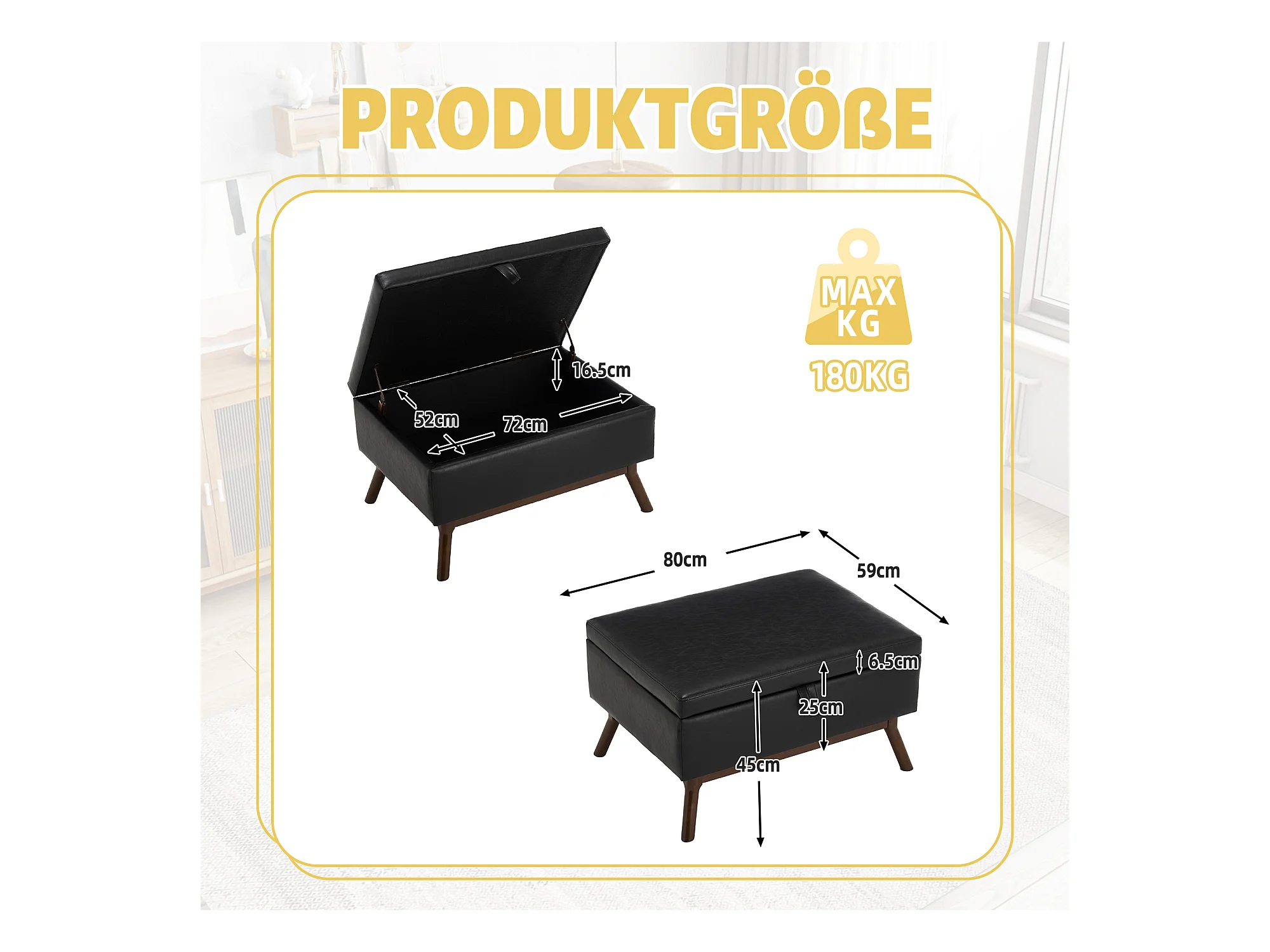 Chaise carrée - Chaise avec rangement - pour salon, entrée et salle familiale - noir