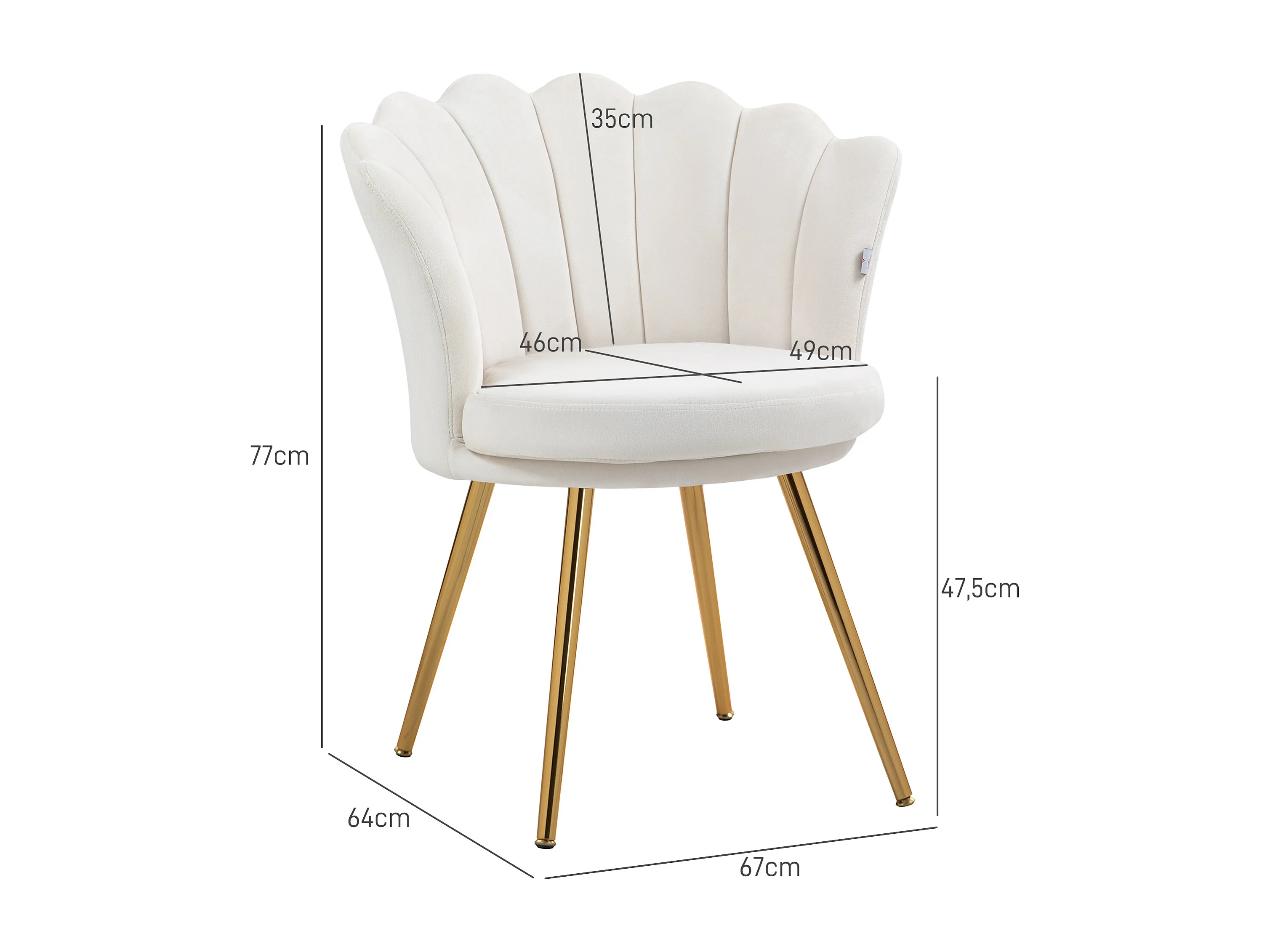 Chaise coquillage chaise design pieds métal dorés effilés velours crème