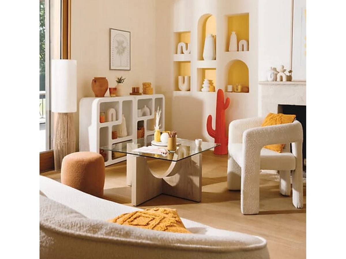 Chaise d'appoint en tissu bouclette crème - Longueur 63 x Profondeur 57 x Hauteur 75 cm
