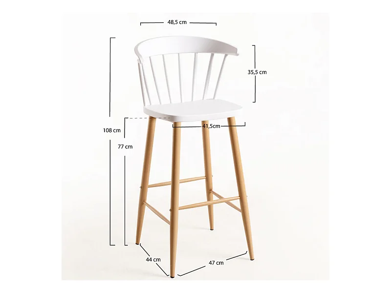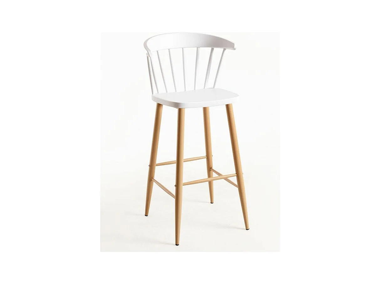 Chaise de bar blanche avec pieds en métal effet naturel Kury 77cm