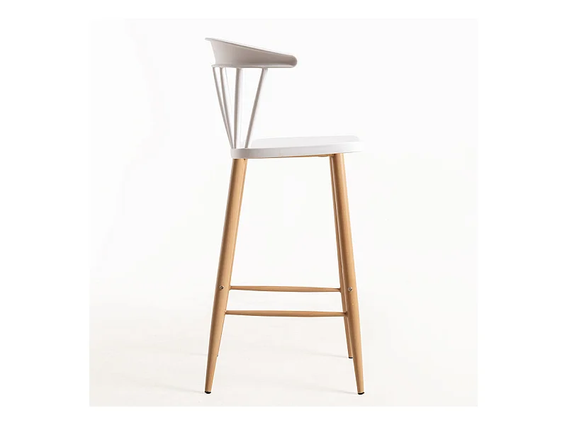 Tabouret de bar design blanc et bois clair 65 cm ARAMIS
