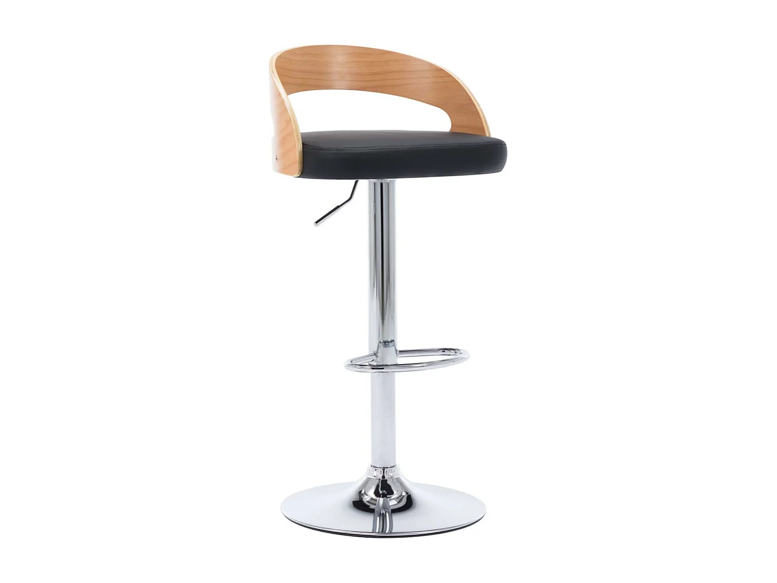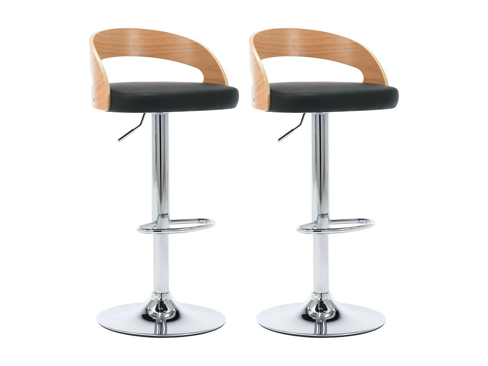 Chaise de bar bois clair et simili cuir noir Karmi - Lot de 2