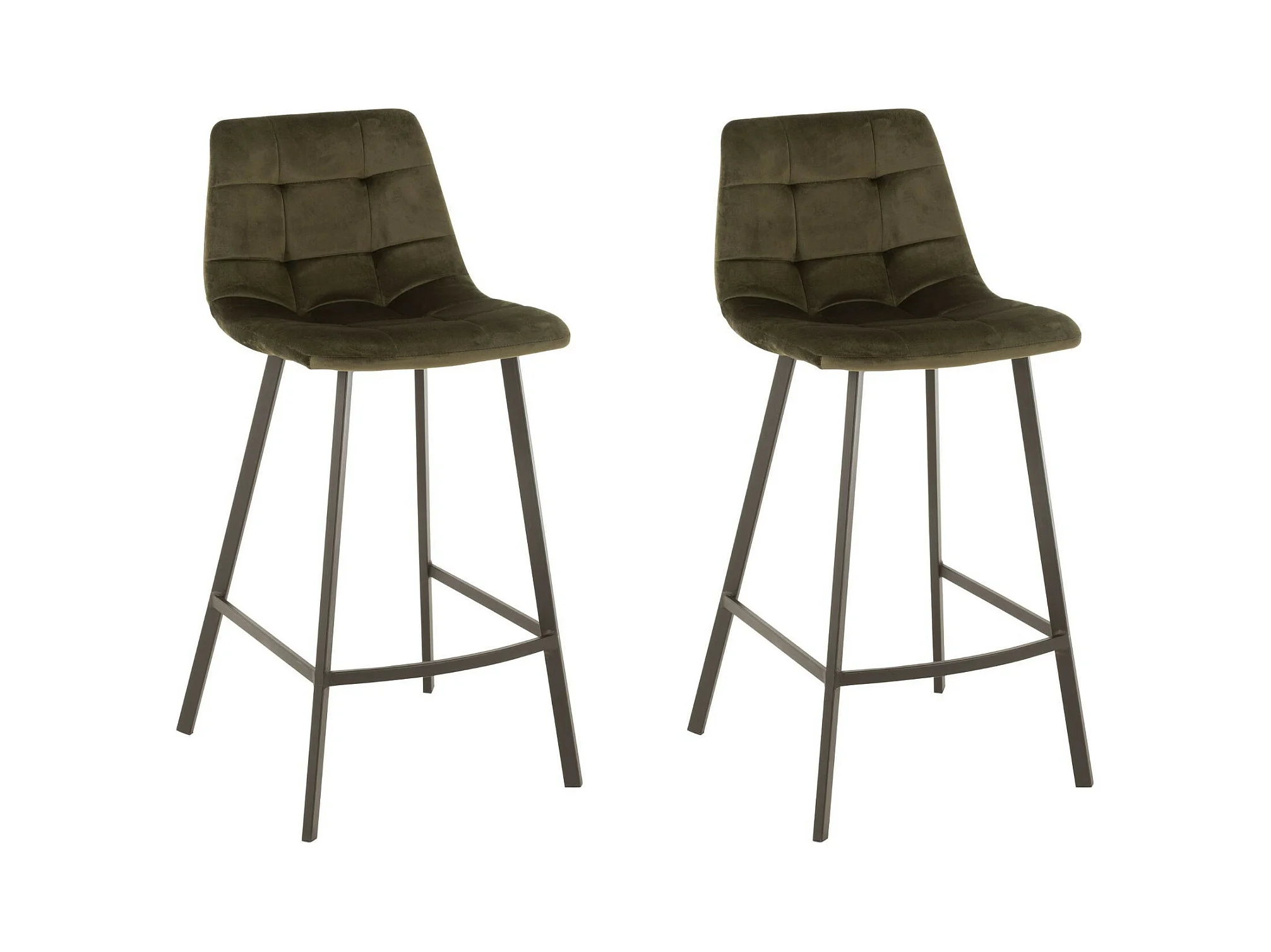 Chaises de bar en velours peau de pêche et métal (lot de 2) - OLIVIA