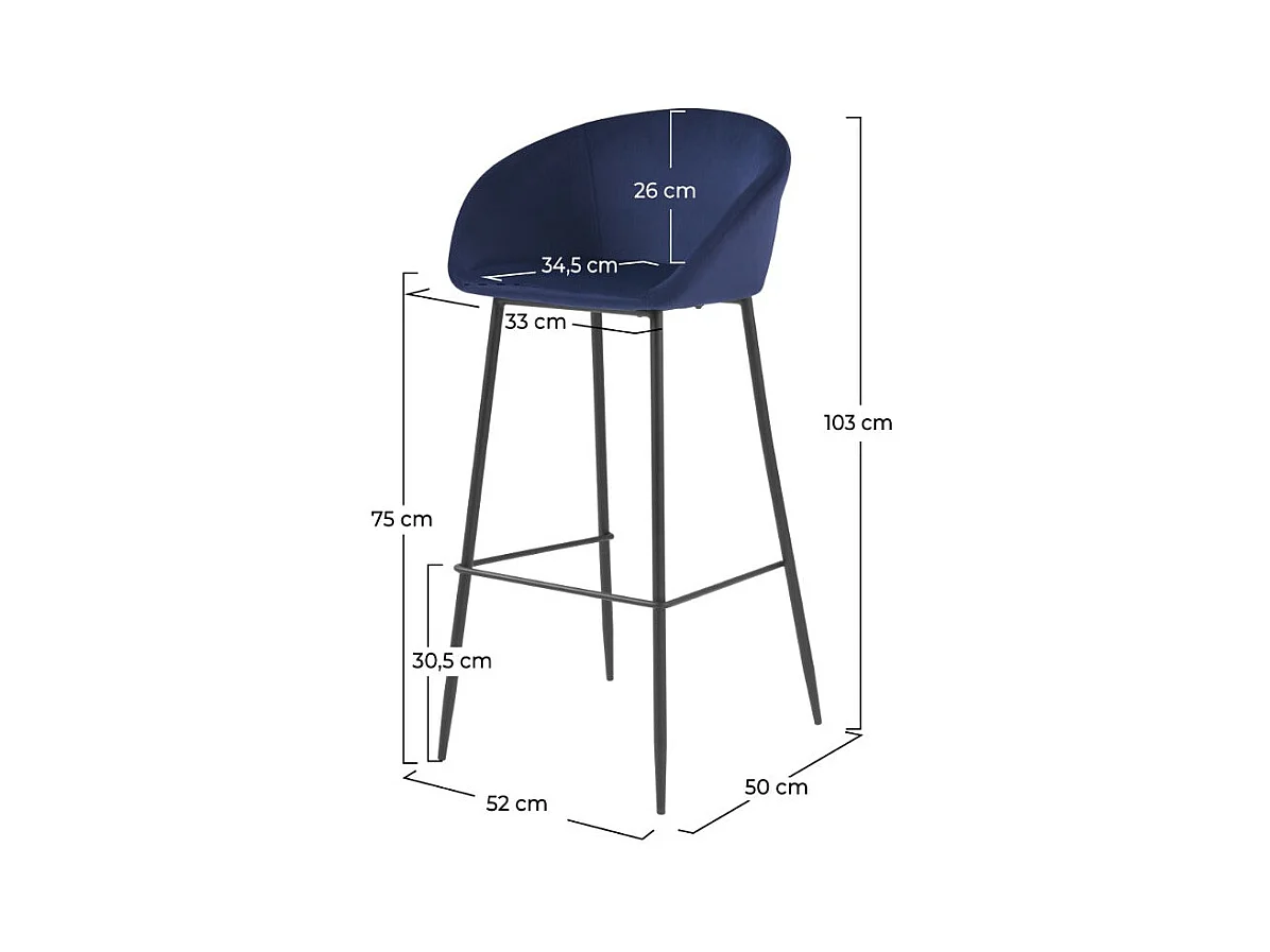 Lot de 2 chaises de bar 75 cm en velours bleu - Marquise