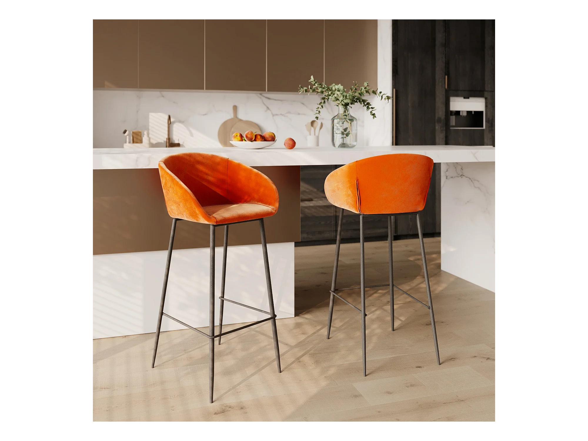 Lot de 2 chaises de bar 75 cm en velours orange - Marquise