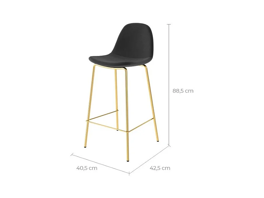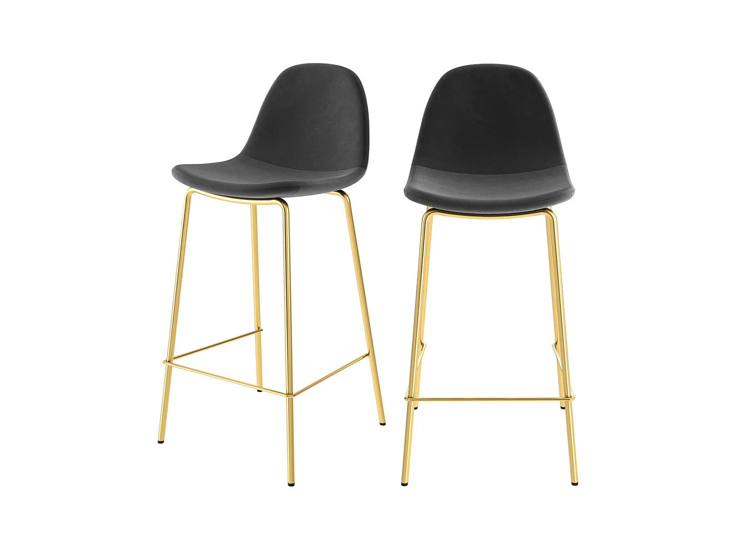 Lot de 2 chaises pour îlot central 65 cm en velours noir et doré - Henrik