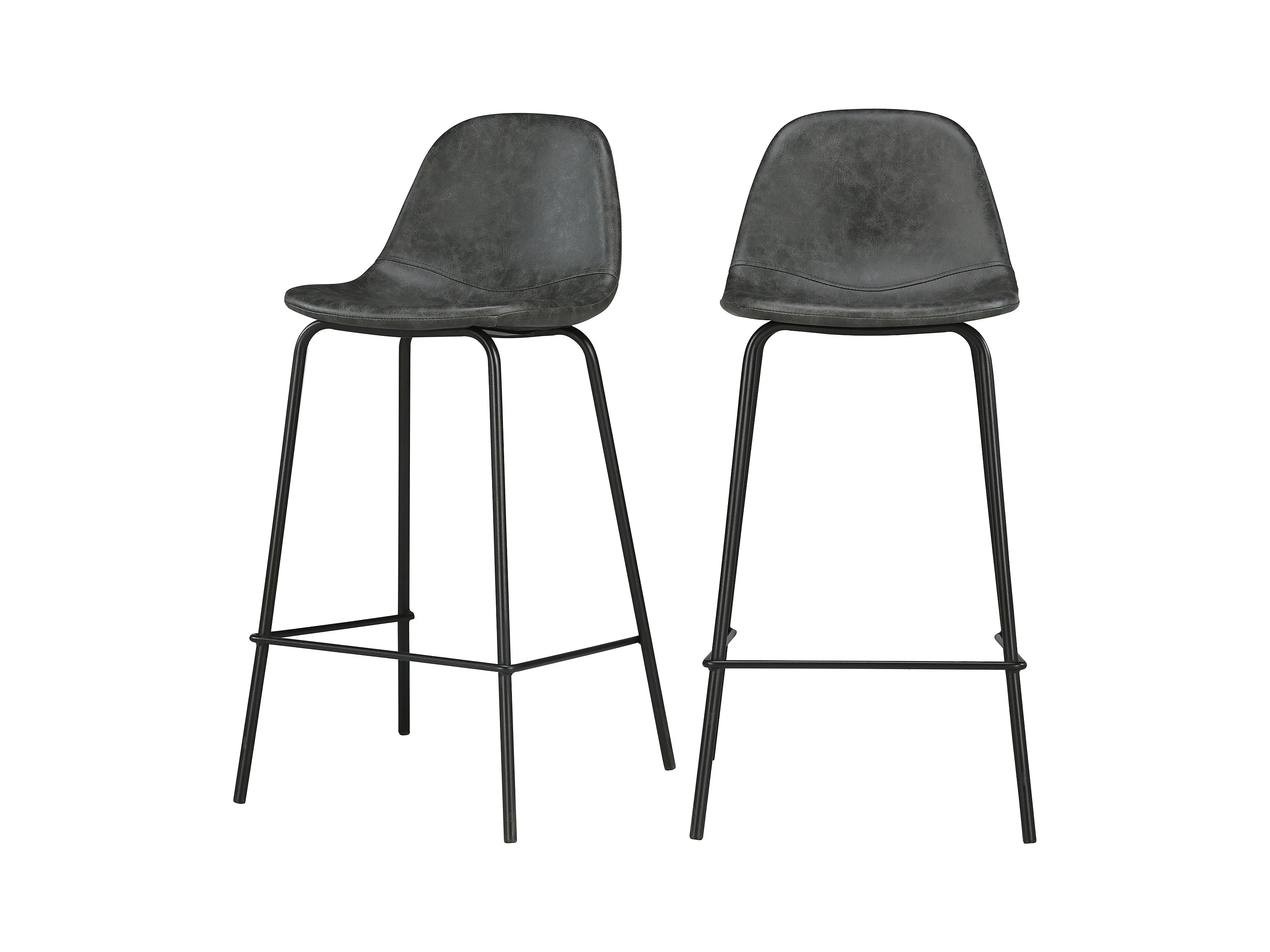 Lot de 2 chaises de bar grises/noires en cuir synthétique 75.5 cm - Texas