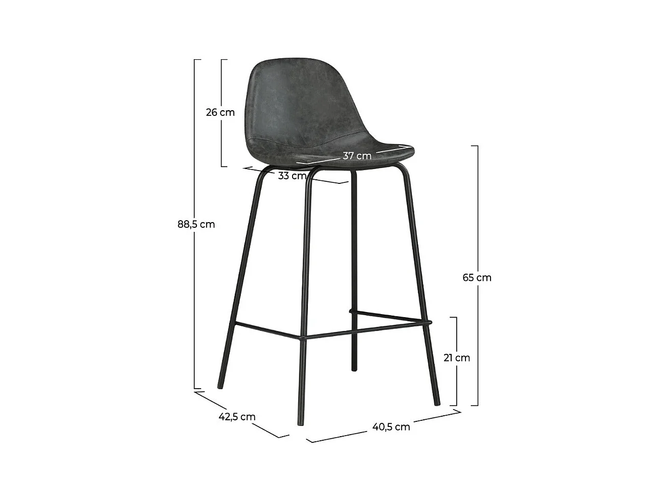 Lot de 2 chaises pour îlot central 65 cm en cuir synthétique gris - Henrik