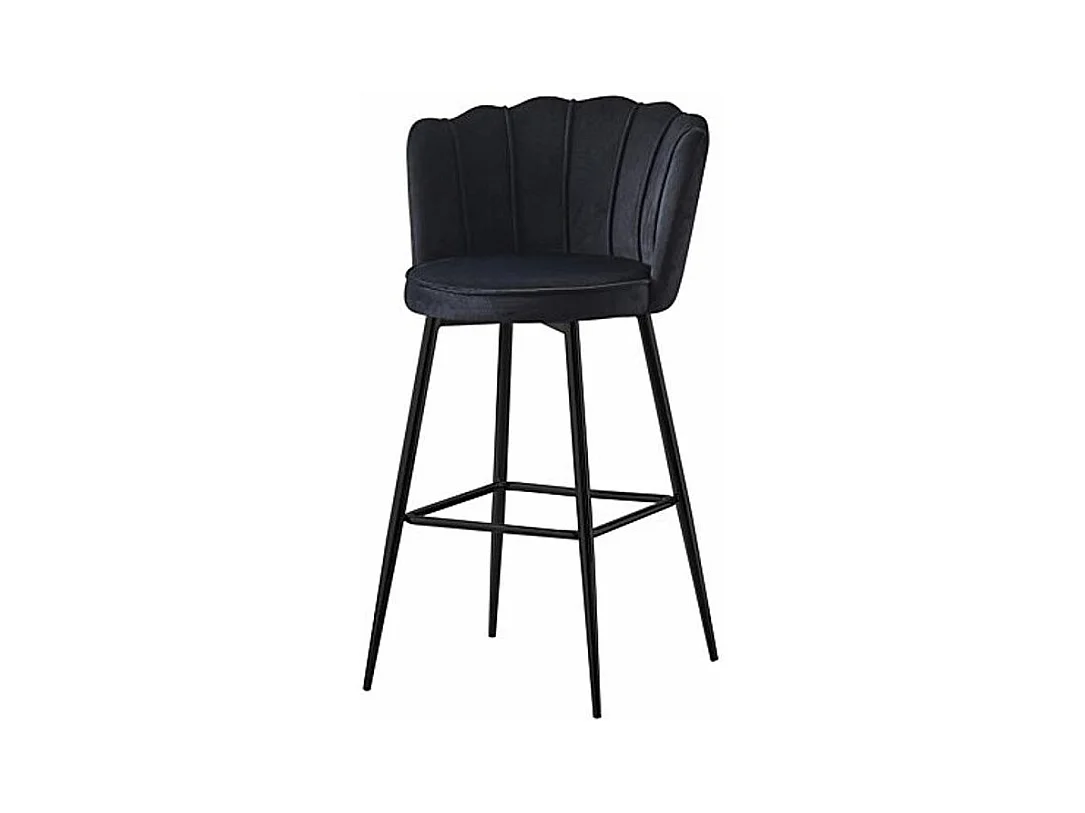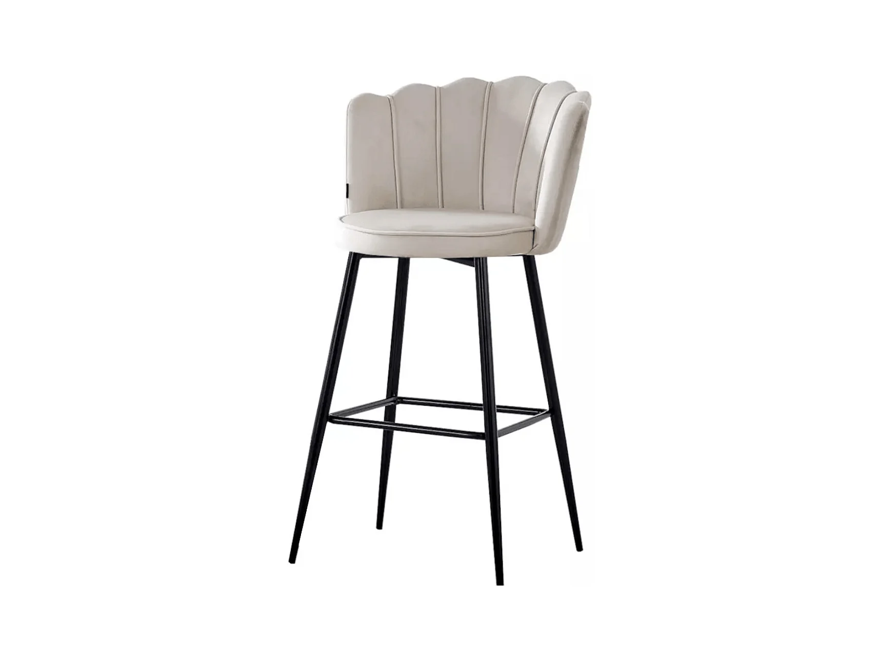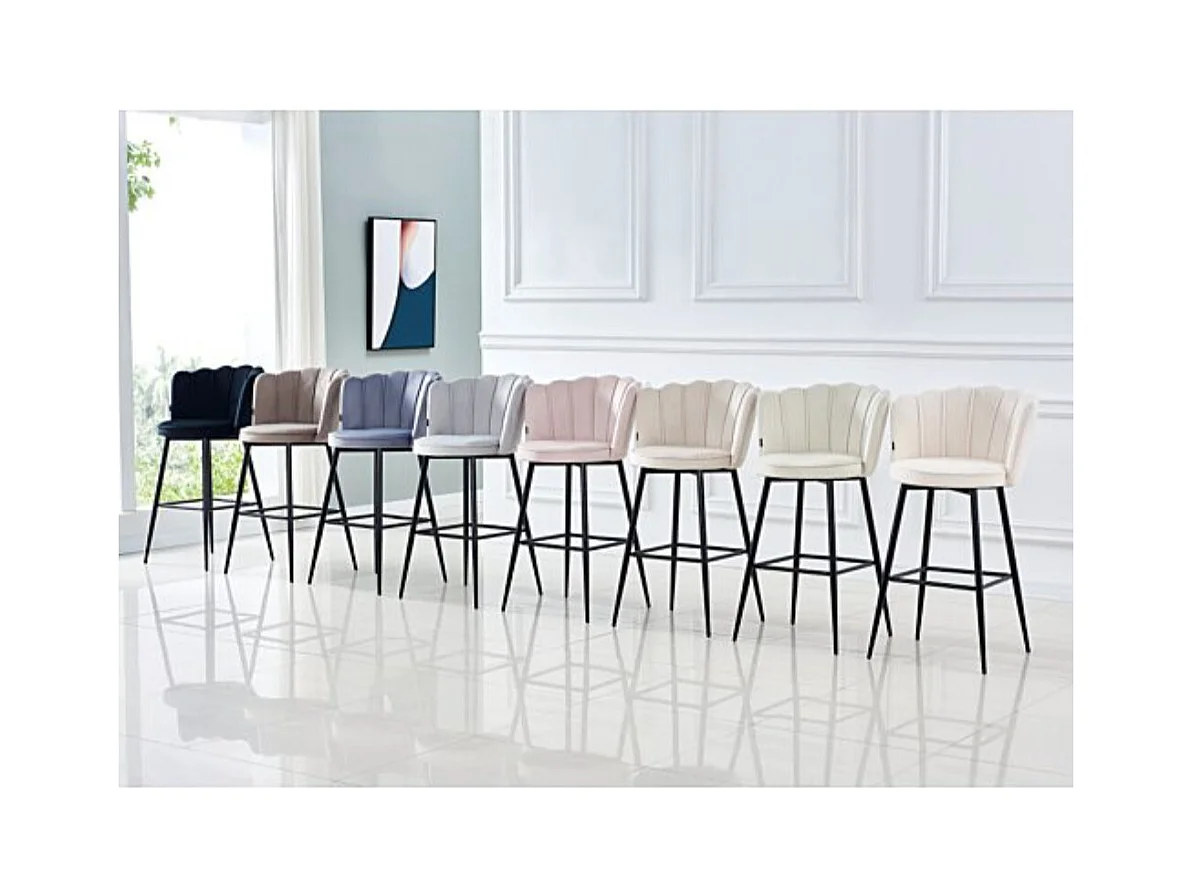 Chaise de bar moderne velours et pieds métal noir Pétale - Lot de 2-Couleur Beige