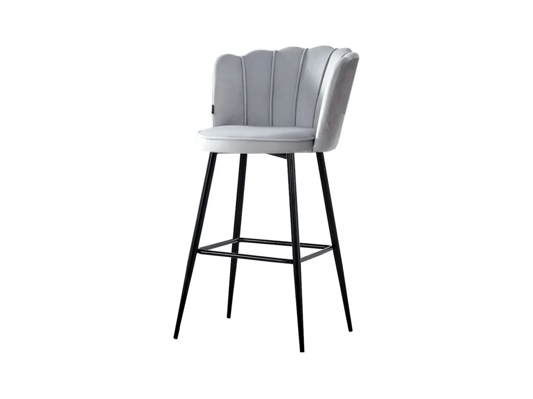 Chaise de bar moderne velours et pieds métal noir Pétale - Lot de 2-Couleur Gris clair