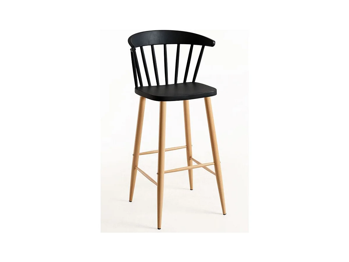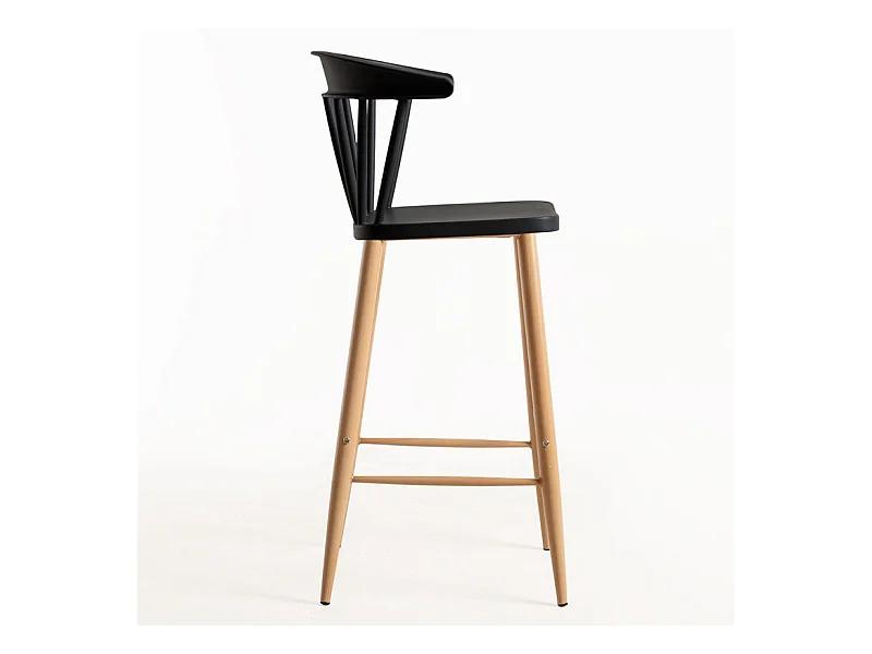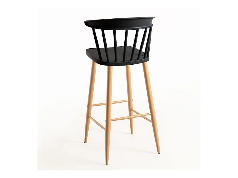 Chaise de bar noire avec pieds en métal effet naturel Kury 77cm