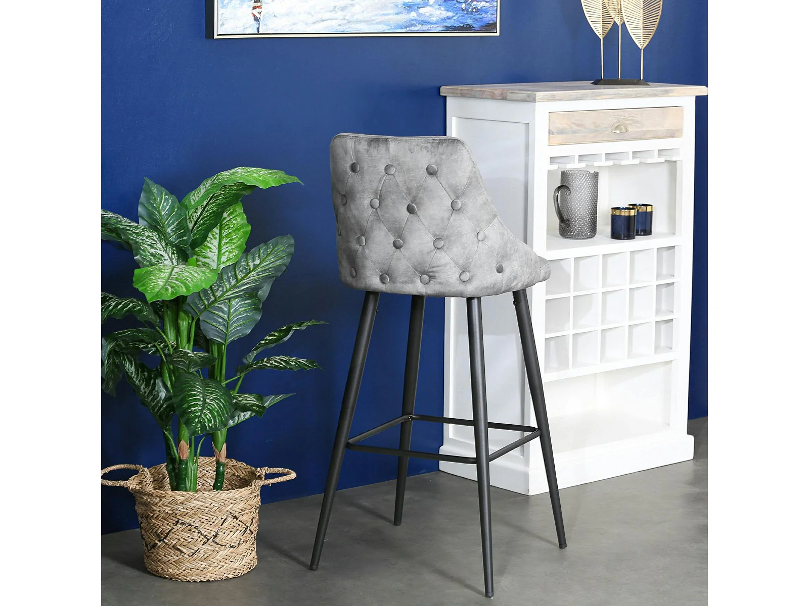 Chaise de bar velours gris (lot de 2) MALMOE