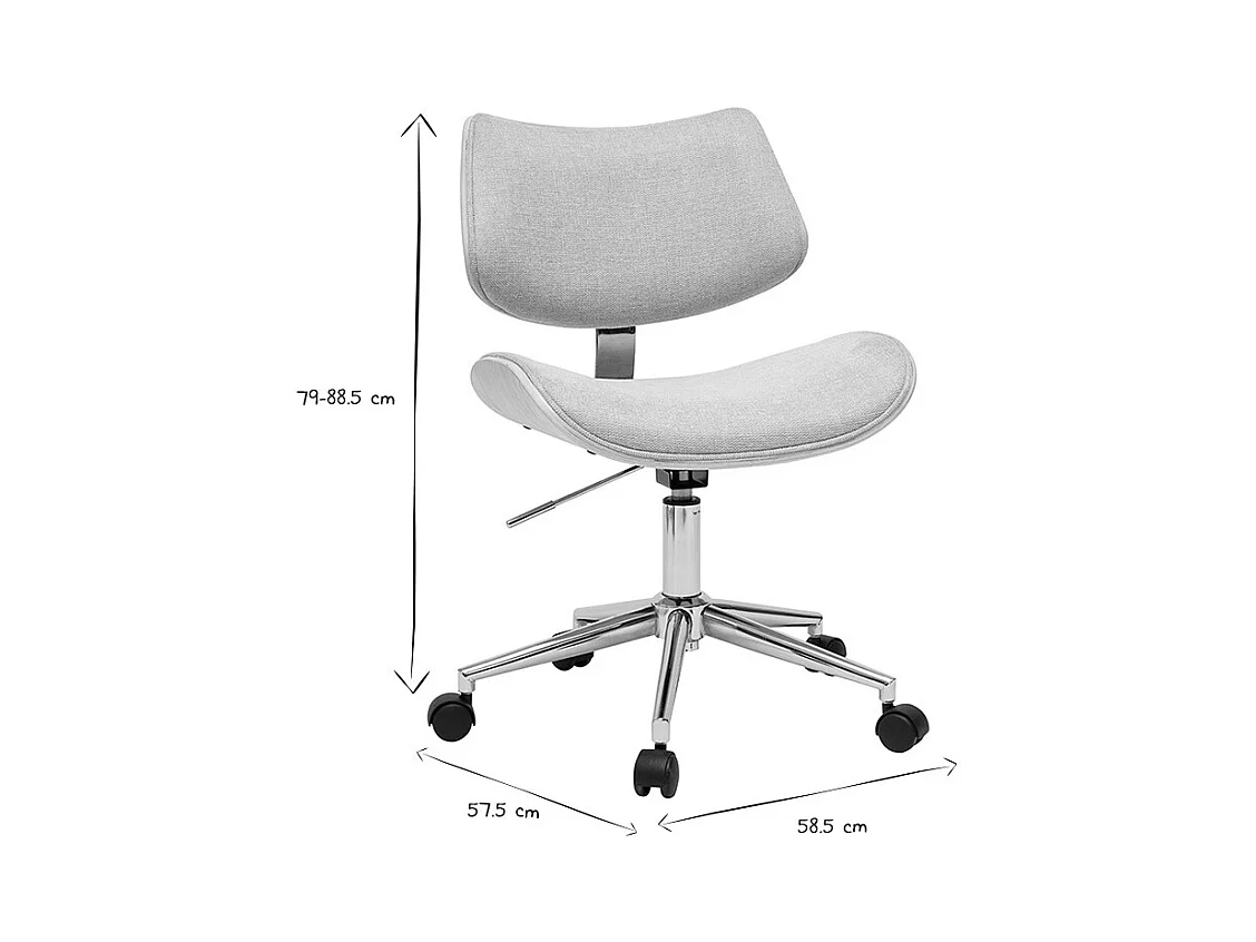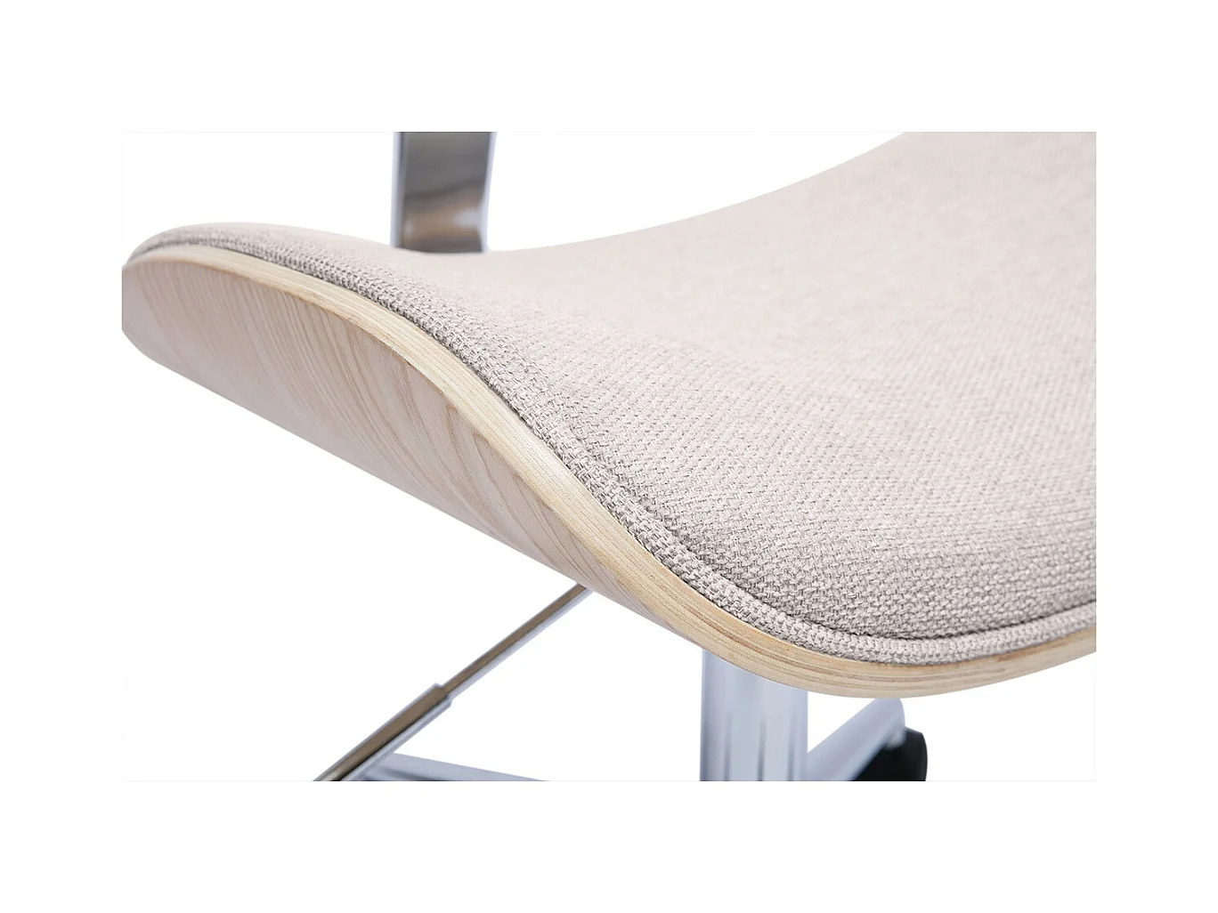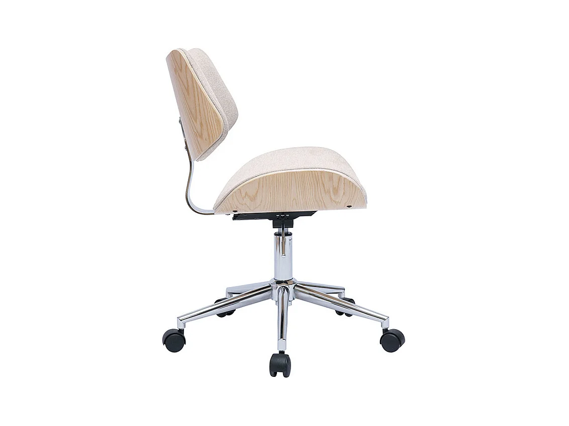 Chaise de bureau à roulettes en tissu chenille beige, bois clair et métal chromé EARL