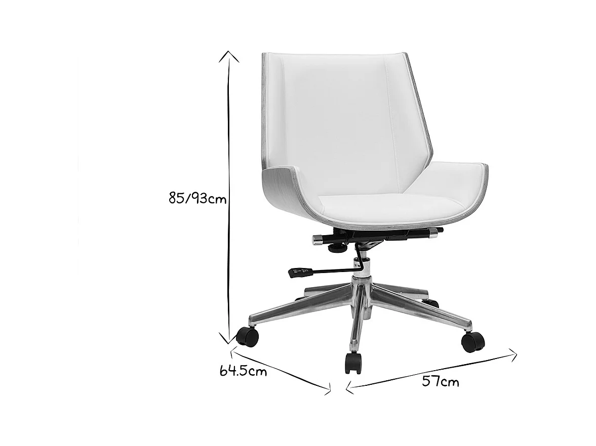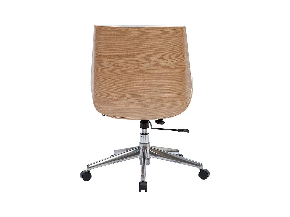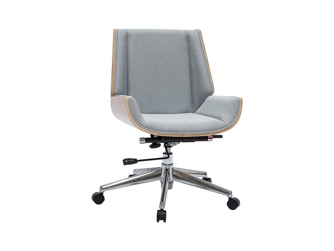 Chaise de bureau à roulettes design en tissu gris clair, bois clair et acier chromé CURVED