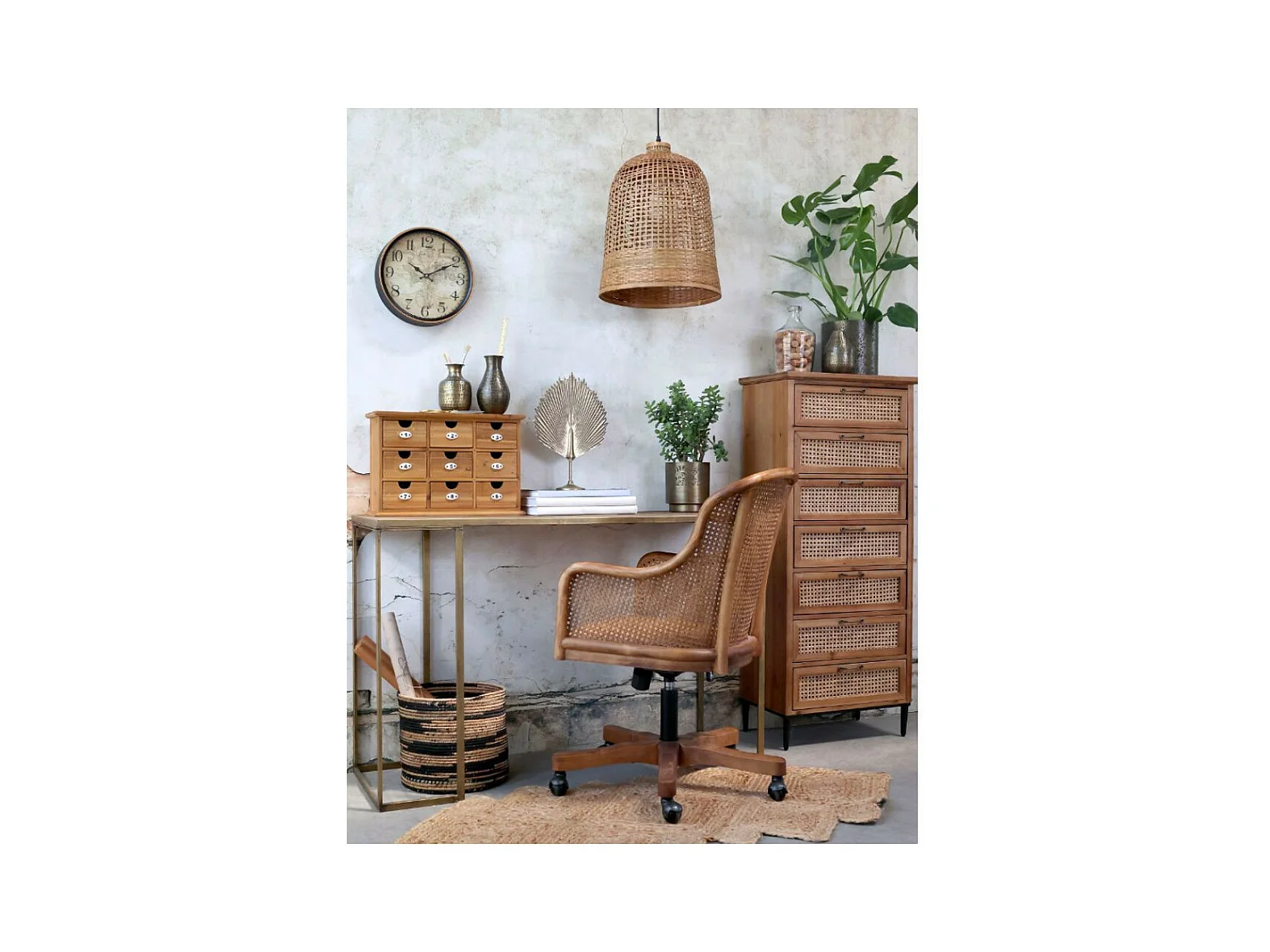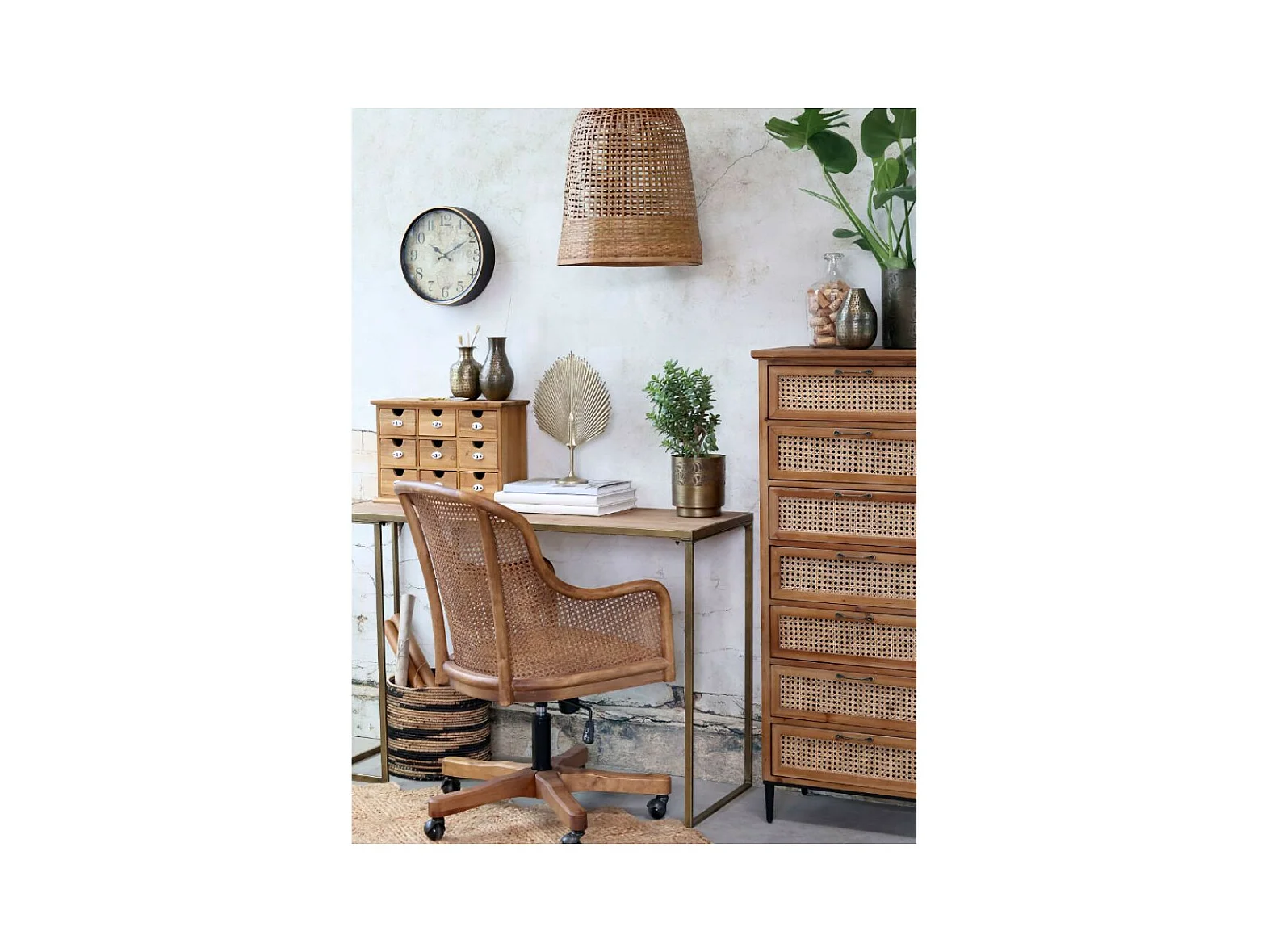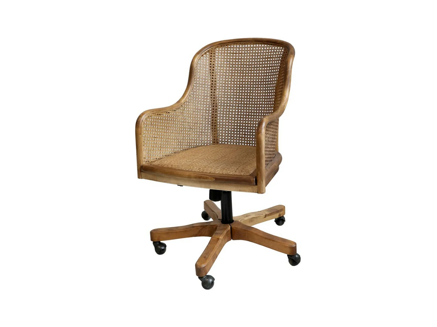 Chaise de bureau antique en rotin et bois de bouleau 62 x 62 x 92 cm