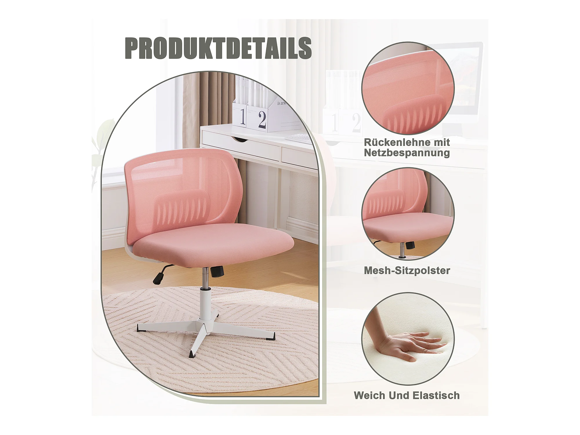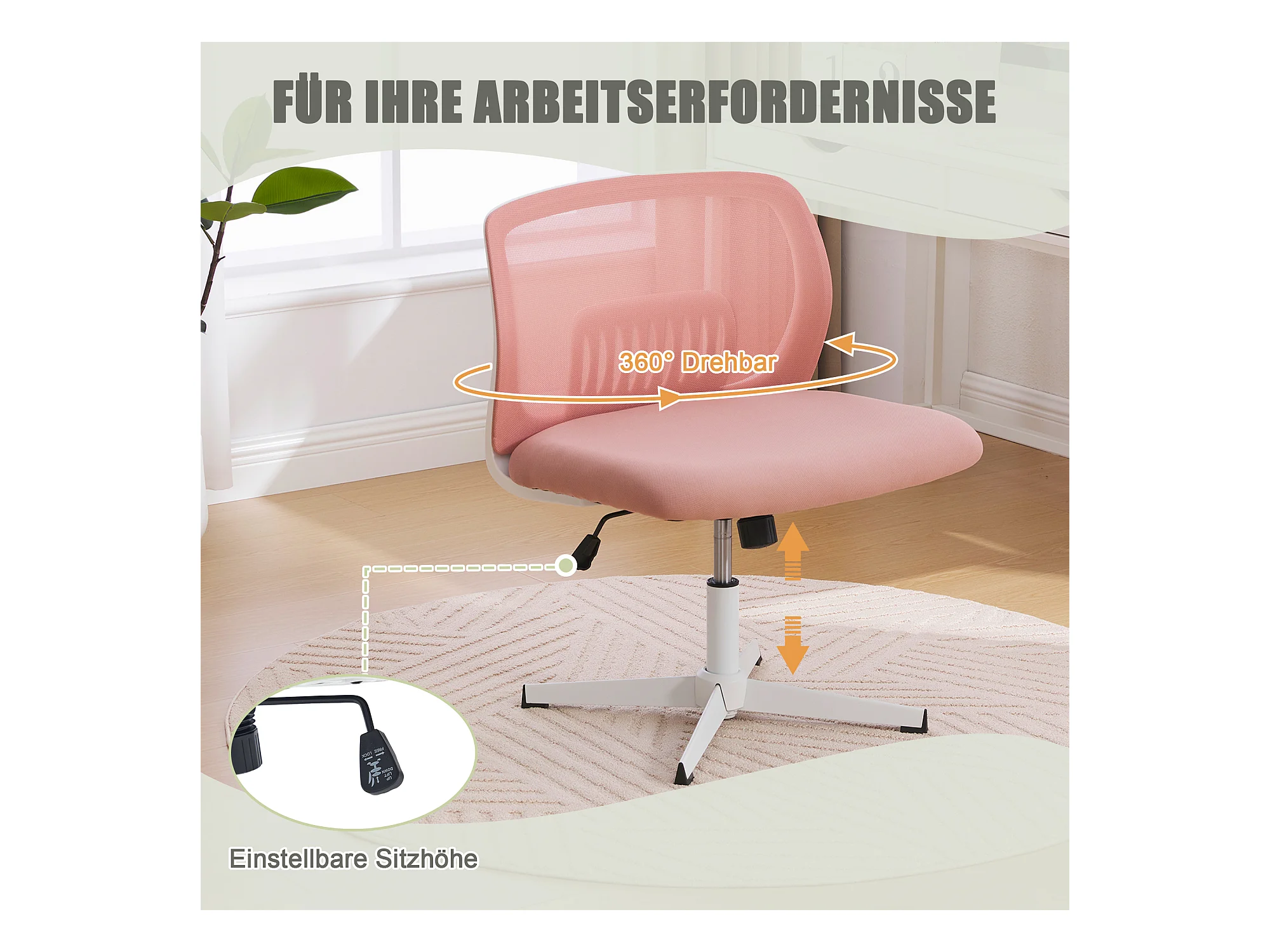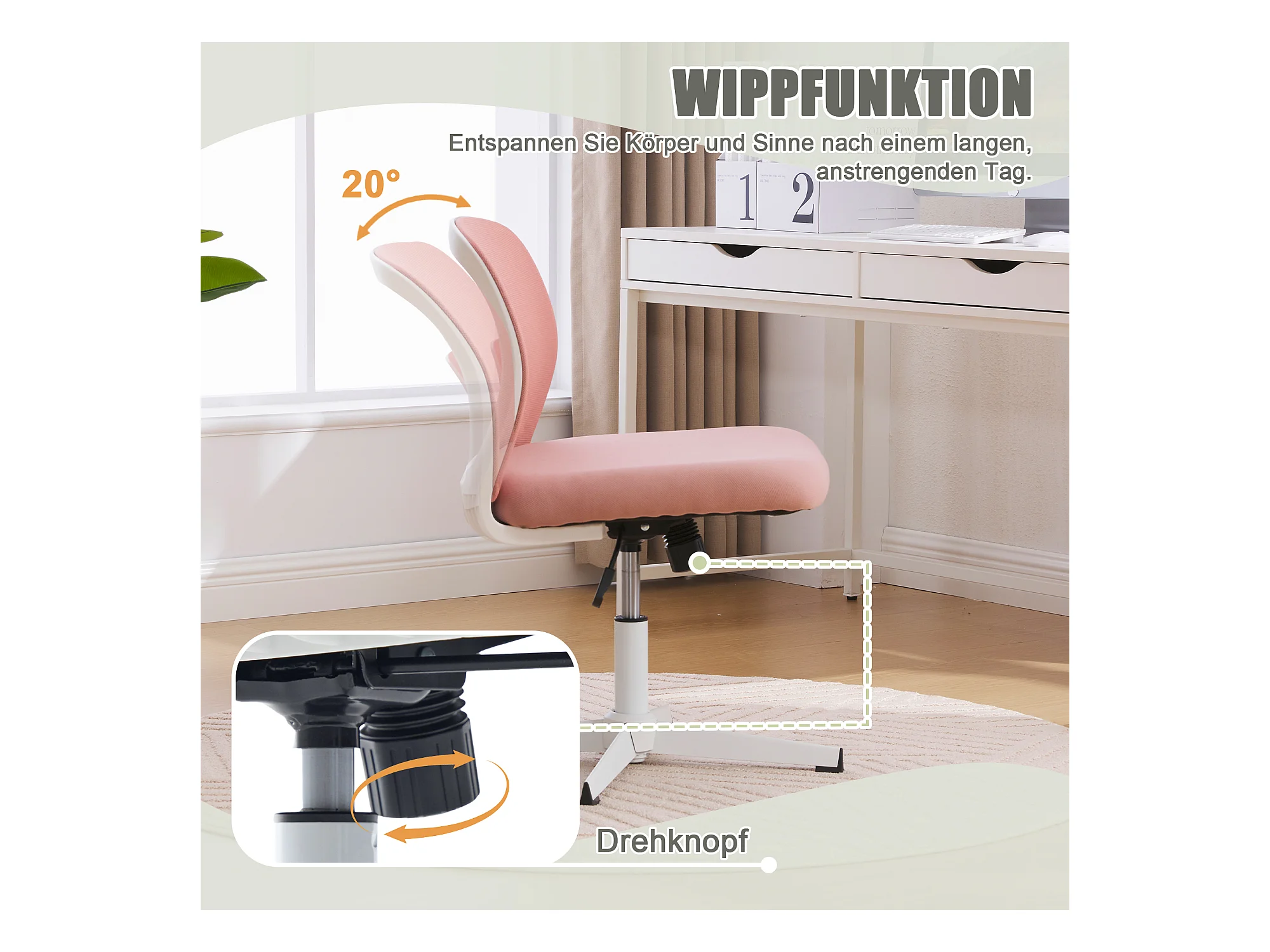 Chaise de bureau ergonomique sans accoudoirs, réglable en hauteur, velours, rose (48x53x90 cm)