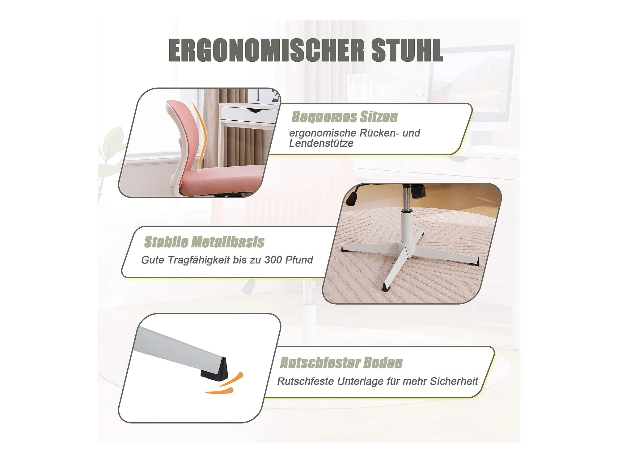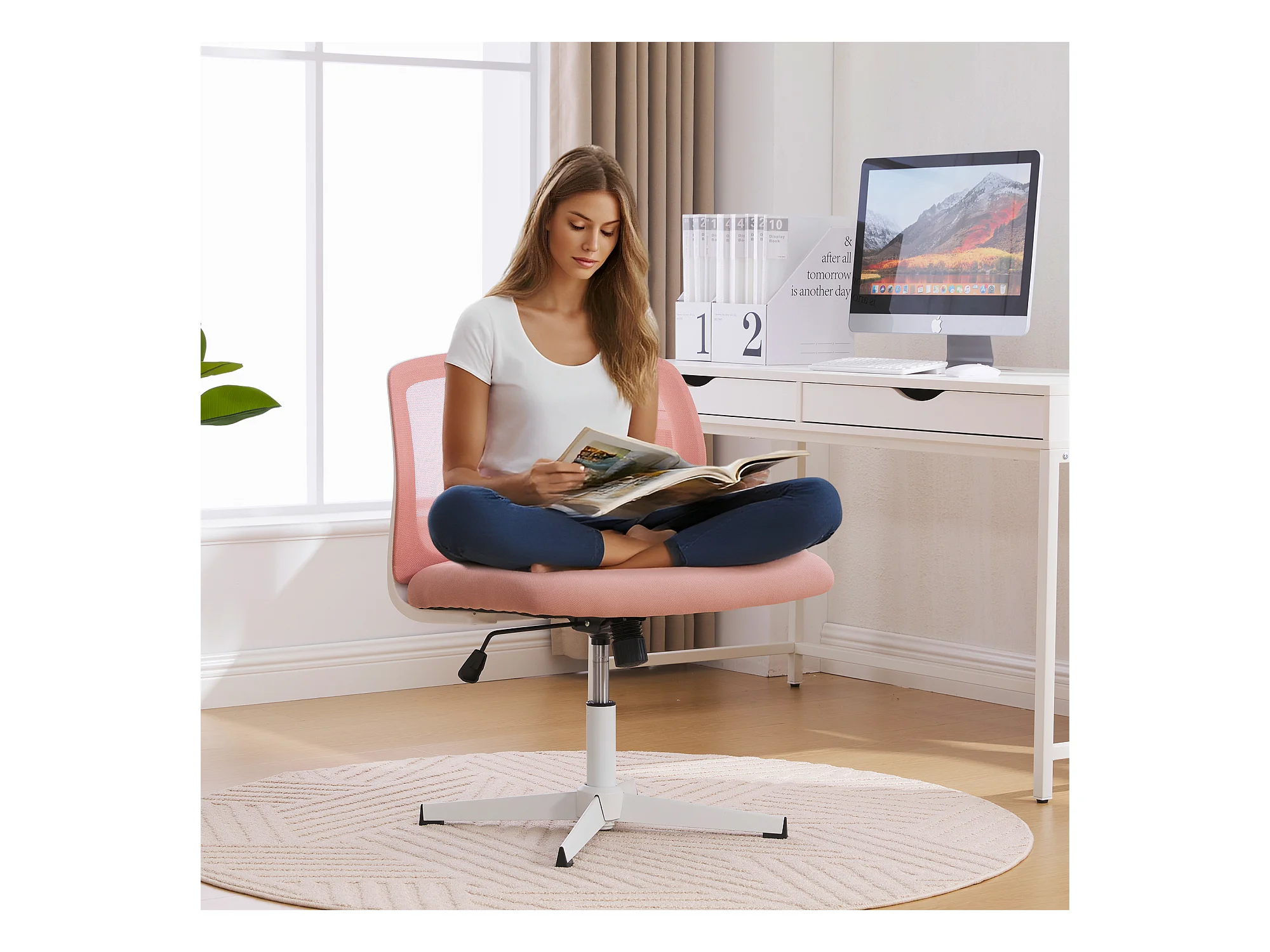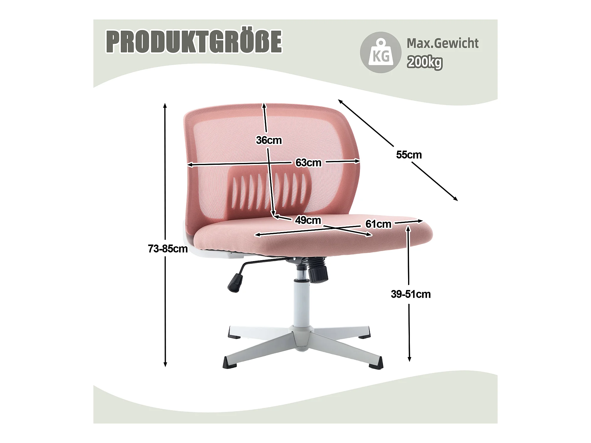 Chaise de bureau ergonomique sans accoudoirs, réglable en hauteur, velours, rose (48x53x90 cm)