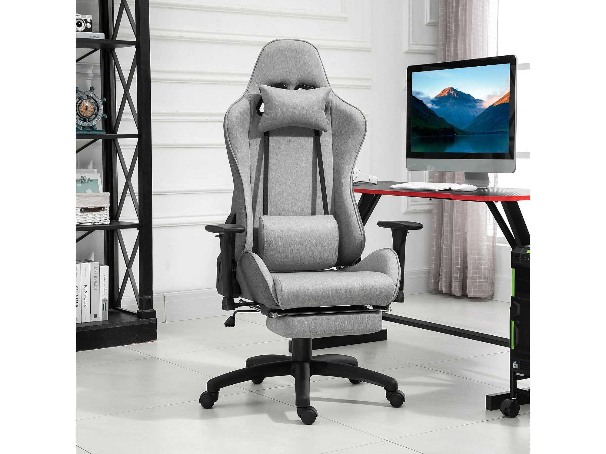 Chaise de bureau avec accoudoirs réglables, soutien lombaire et coussin amovible, mousse, gris (73x57x127-135 cm)