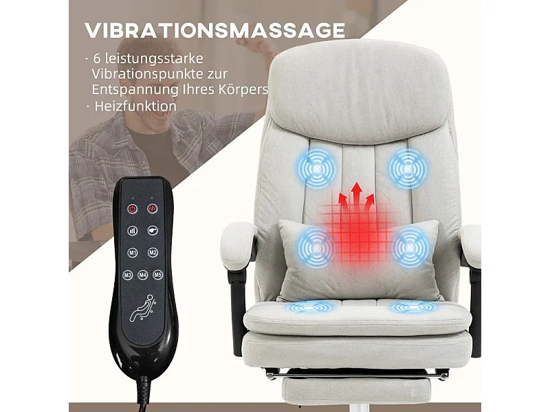 Chaise de bureau avec massage et chauffage, microfibre, crème (66x67x110-118 cm)