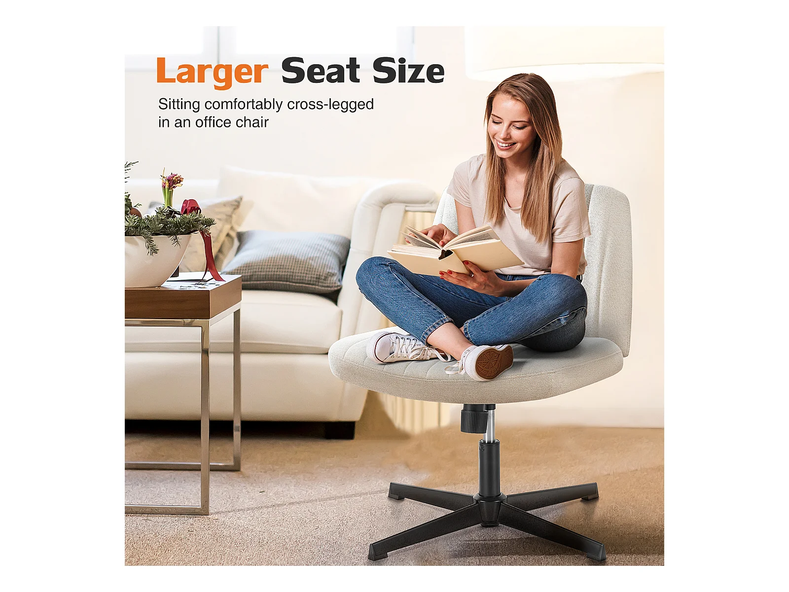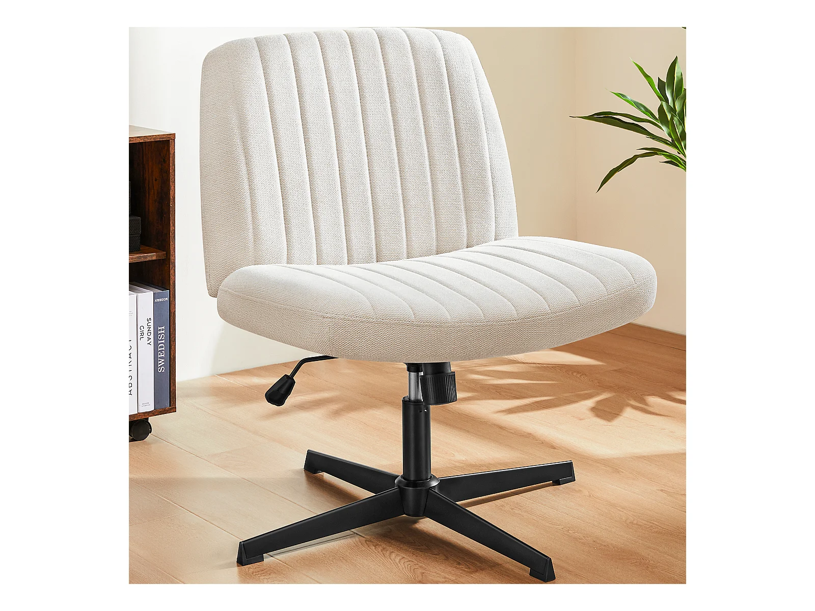 Chaise de bureau,Chaise à pieds croisés,Chaise de bureau sans bras et sans roulettes,tissu,Beige