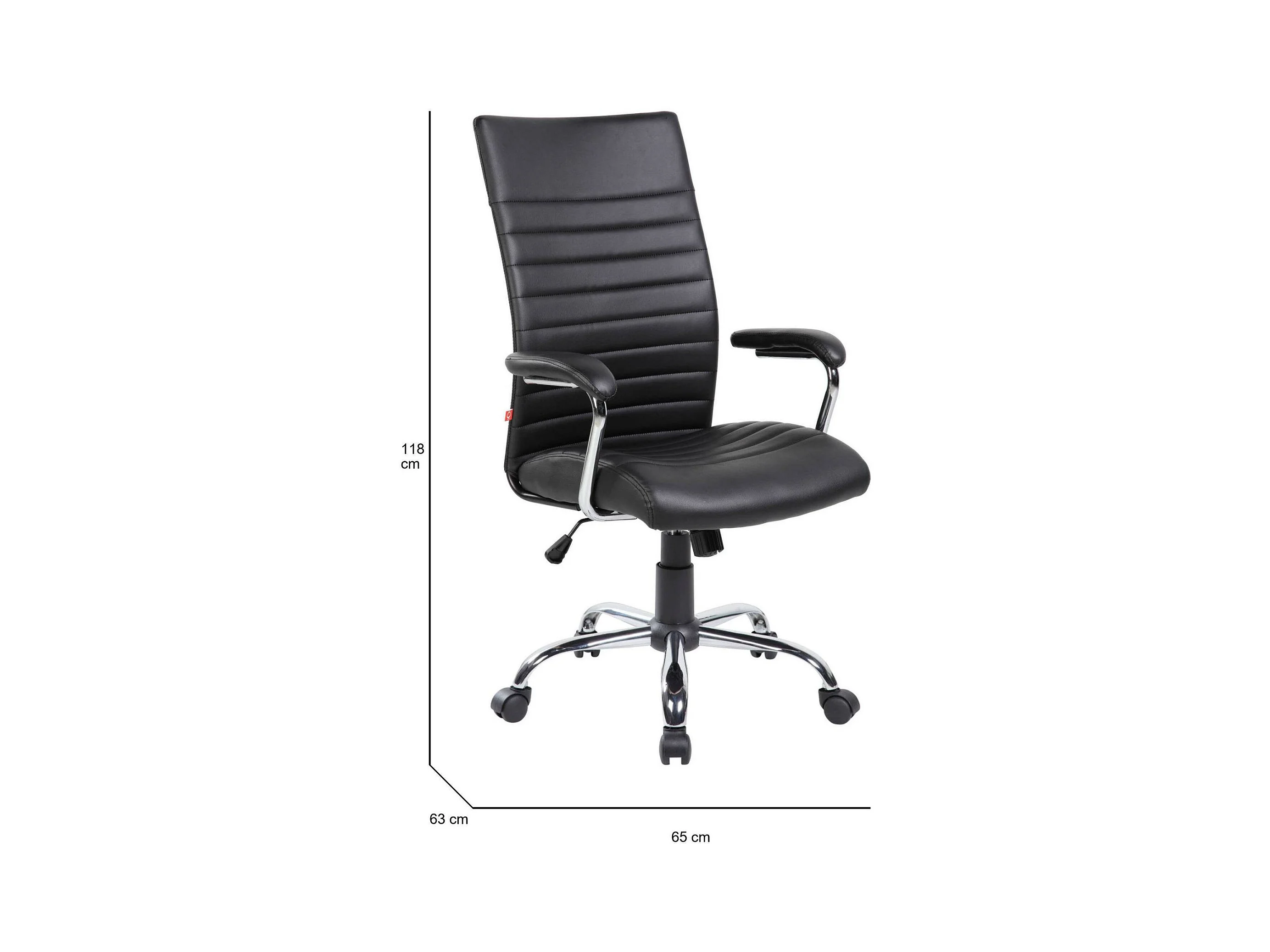 Chaise de bureau Ddim, Fauteuil présidentiel avec accoudoirs, Chaise de bureau ergonomique, 63x65h108/118 cm, Noir