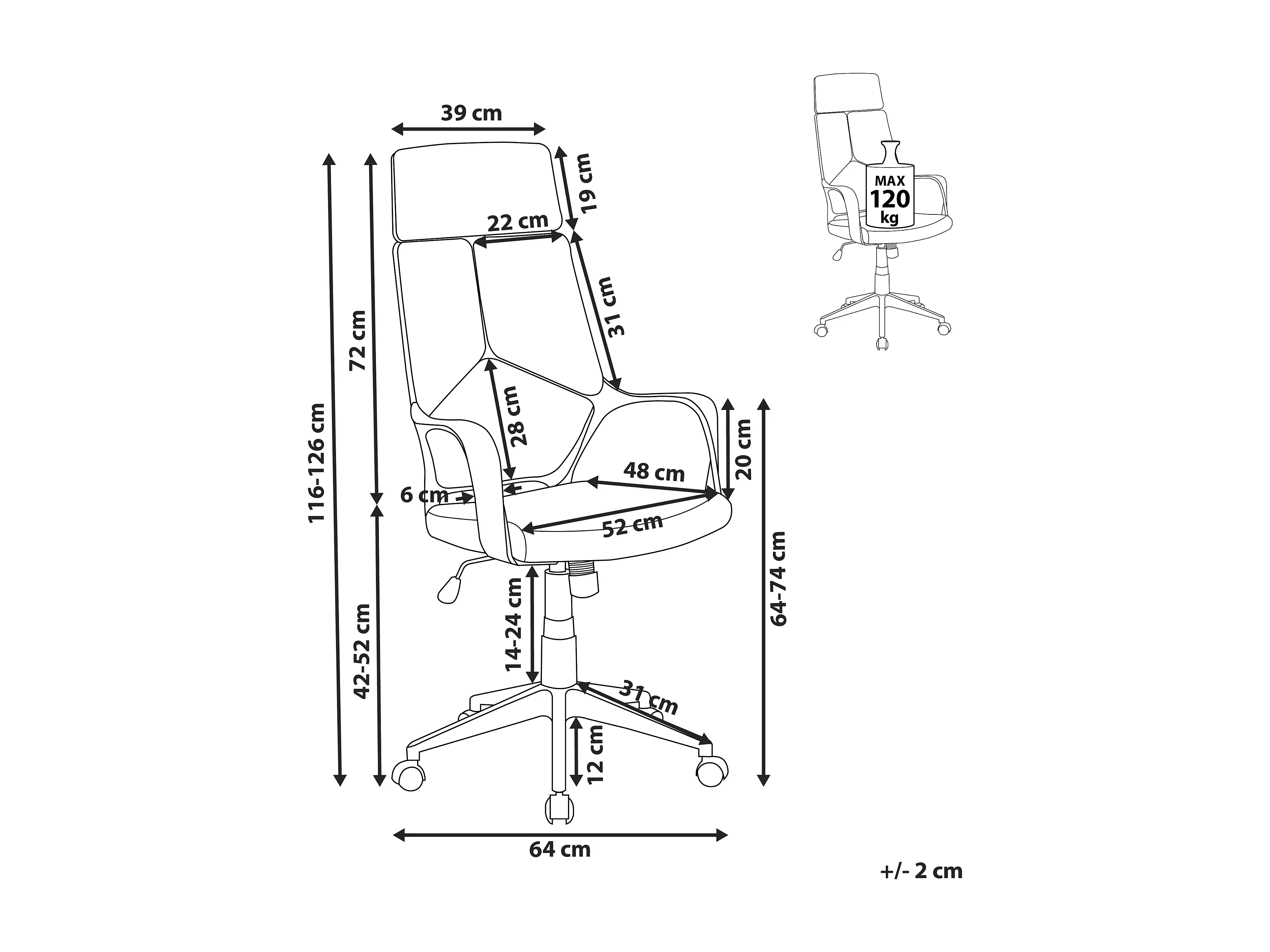 Fauteuil de bureau sur tissu noire 68 x 64 x 118 cm 10_0002588