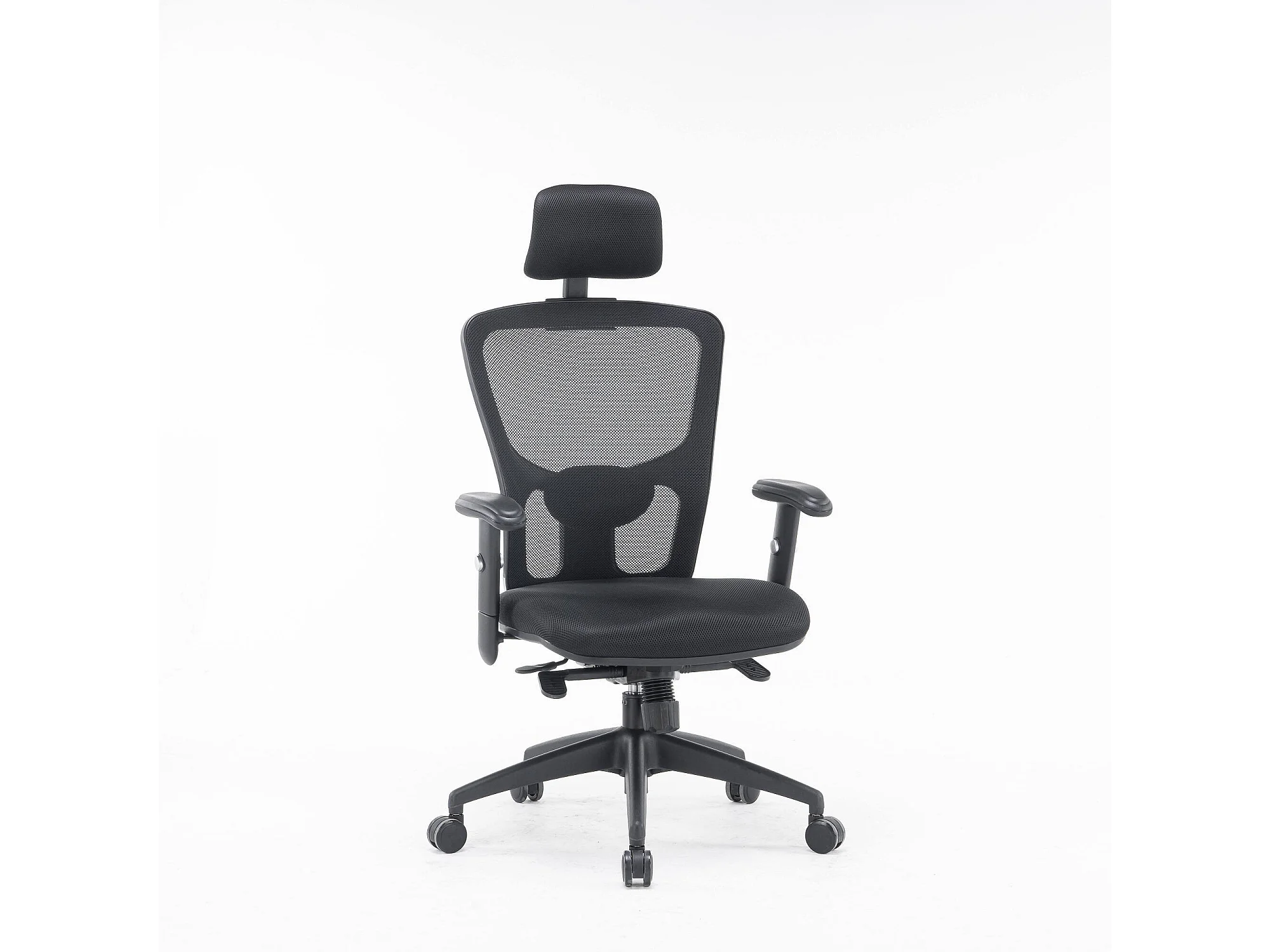 Chaise de bureau Dhenr, Chaise de direction en maille avec accoudoirs, Siège de bureau ergonomique, 68x66h120/130 cm, Noir