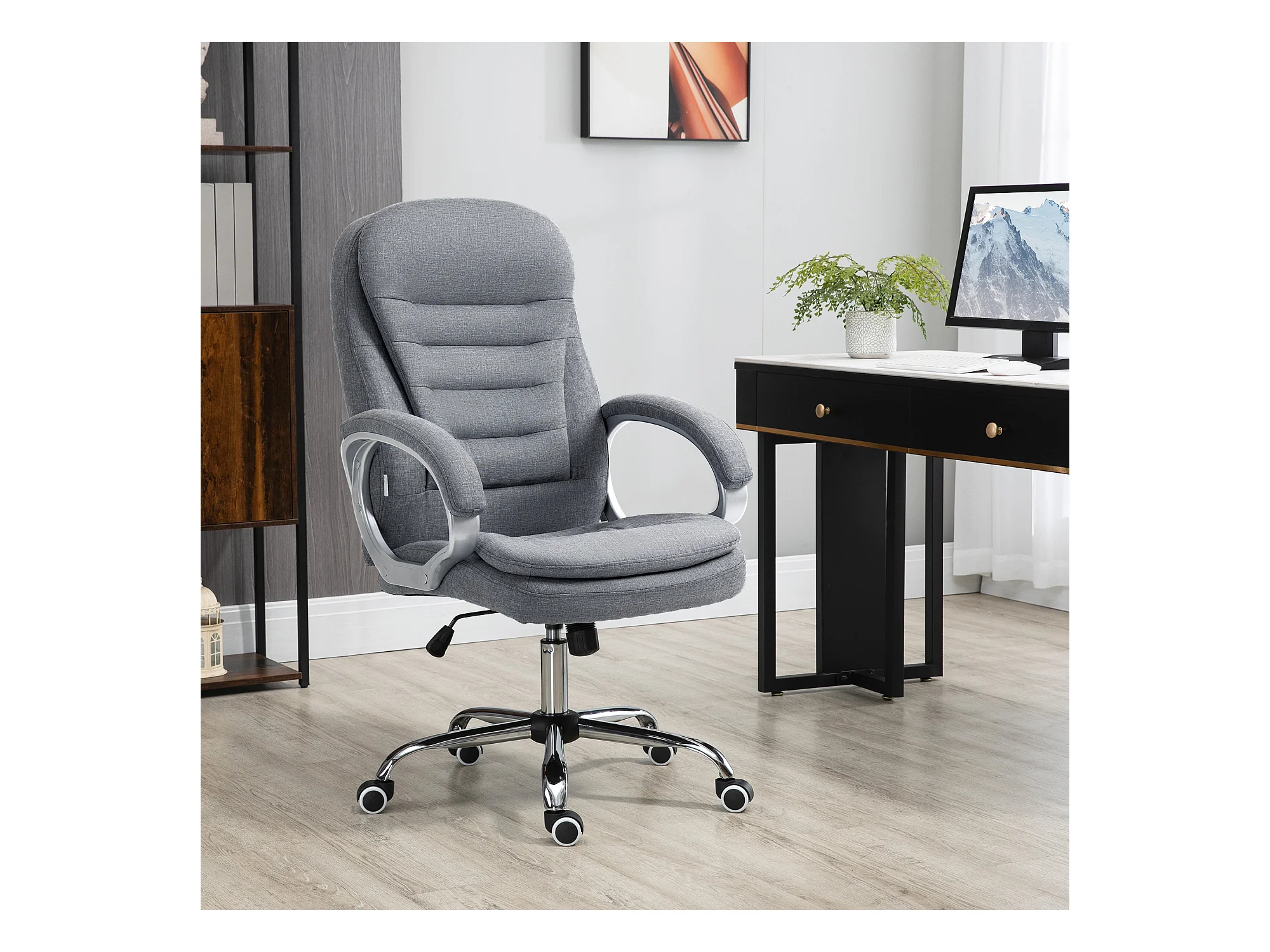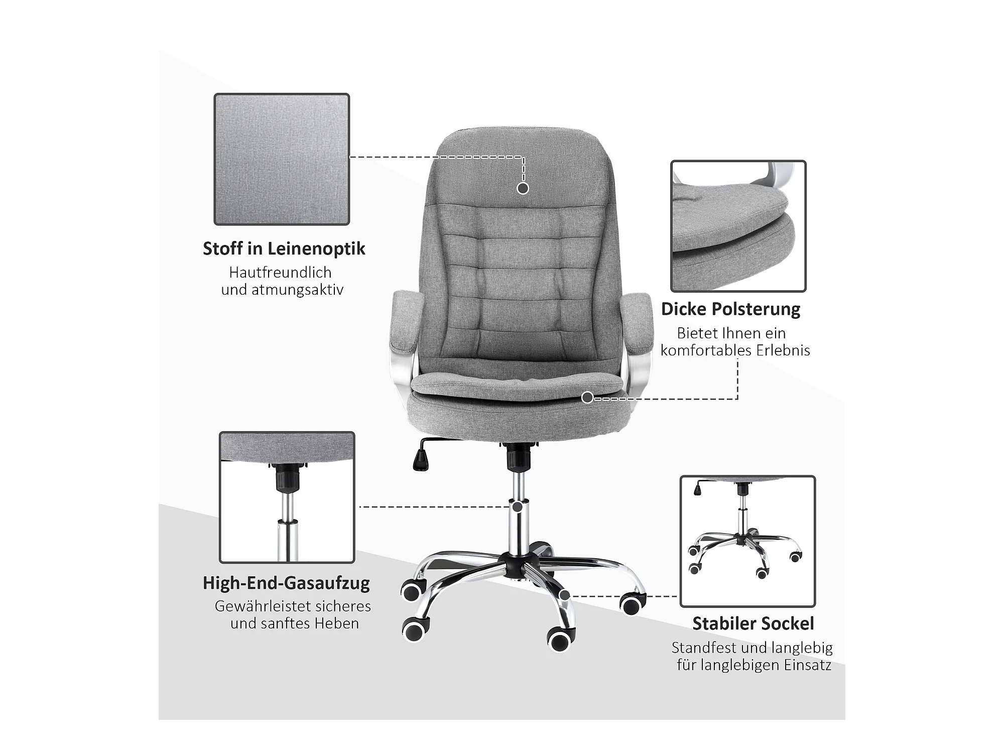 Chaise de bureau ergonomique avec accoudoirs réglables, fonction de basculement, tissu en lin, gris (64x75x121 cm)