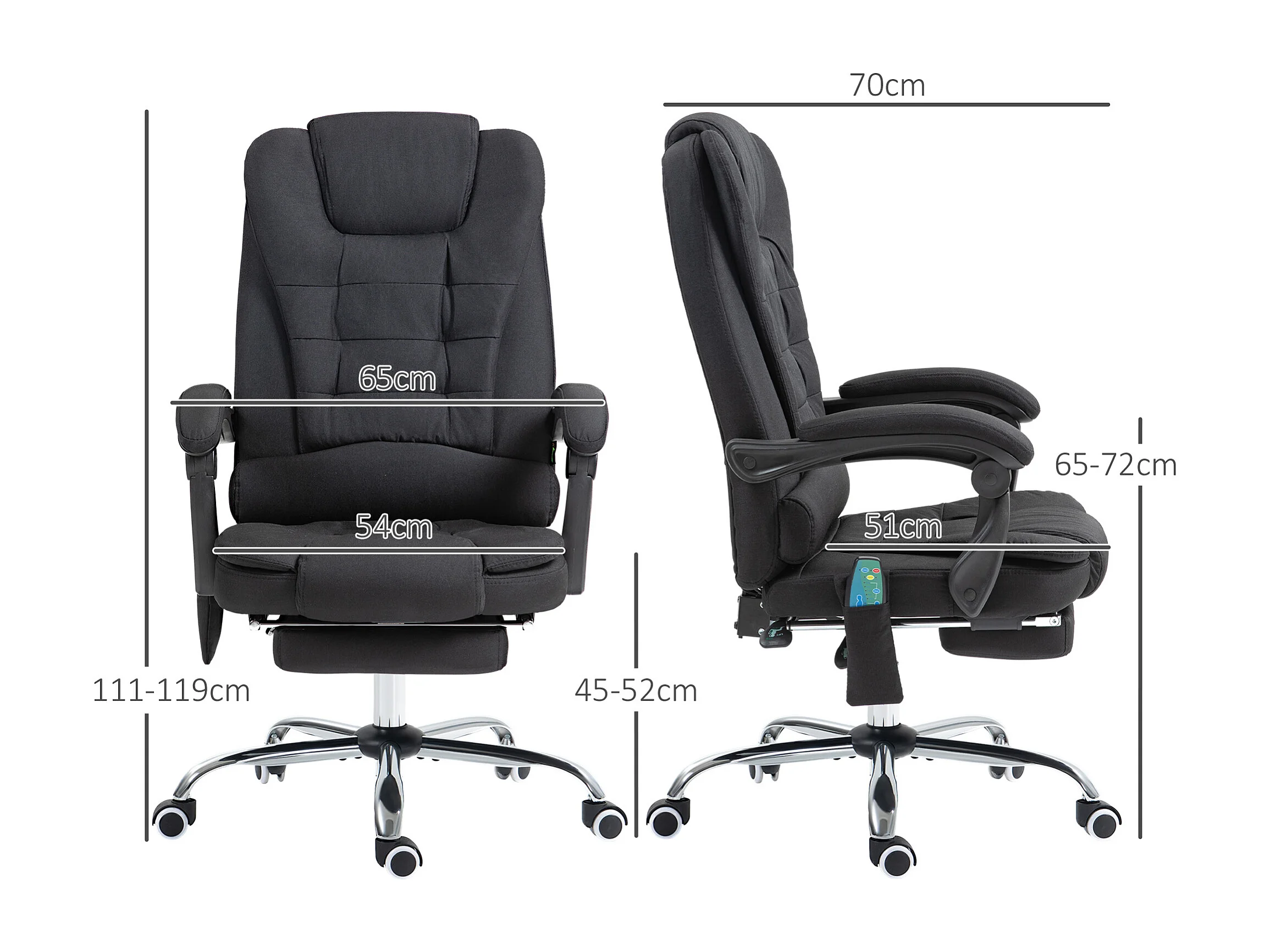 Chaise de bureau ergonomique avec fonction massage et chaleur, réglable, en polyester, noir (65x70x119 cm)