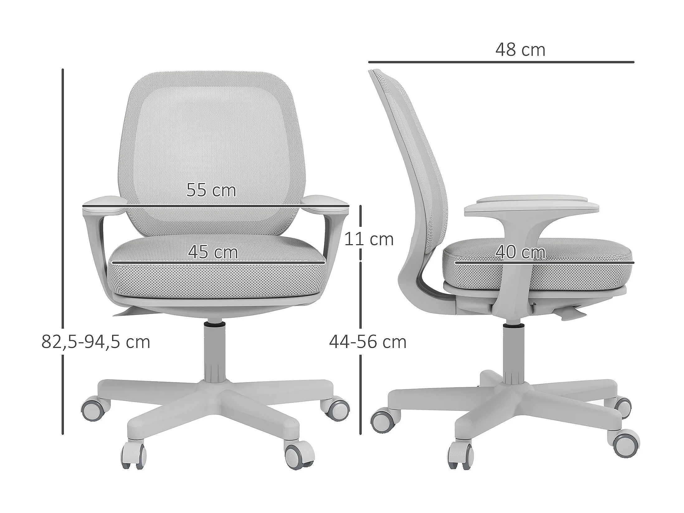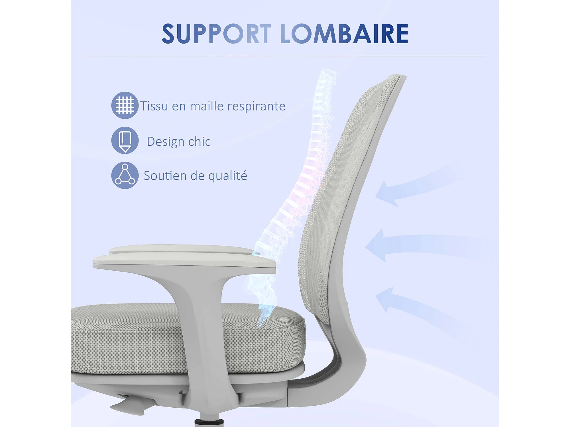 Chaise de bureau ergonomique hauteur réglable pivotante 360° revêtement maille gris