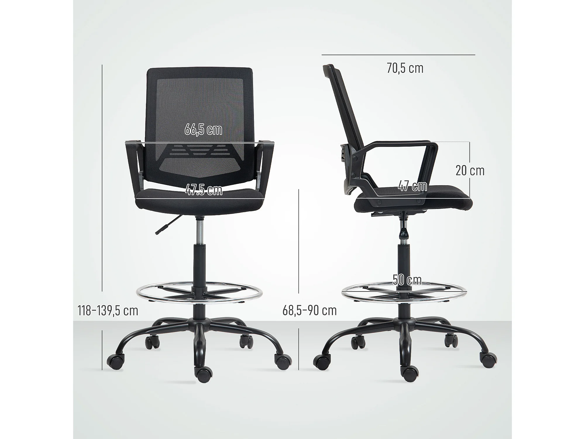 Chaise de bureau haute ergonomique - chaise de travail surélevée - assise haute réglable H.68-90 cm - noir